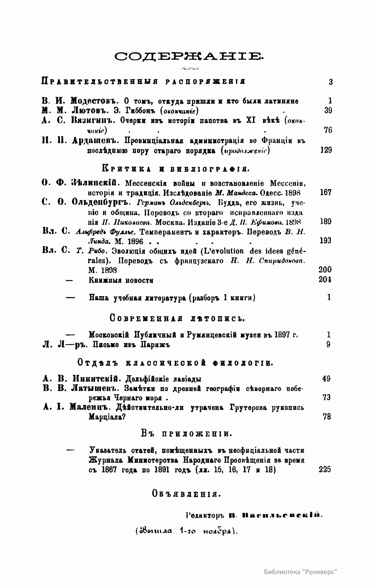 С 1864 года стали выходить указатели к повременным изданиям Министерства народного просвещения начиная с 1803 года.