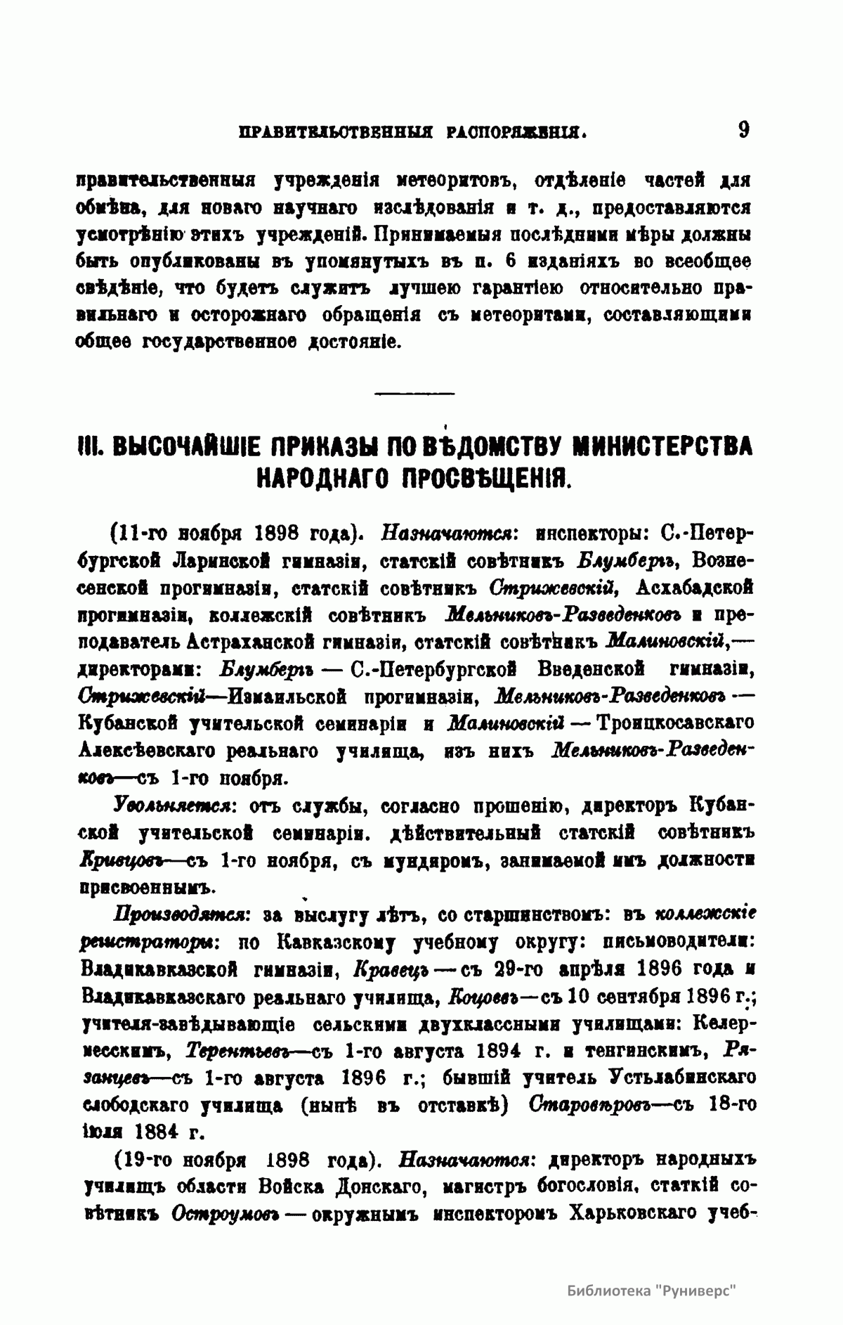 С 1864 года стали выходить указатели к повременным изданиям Министерства народного просвещения начиная с 1803 года.