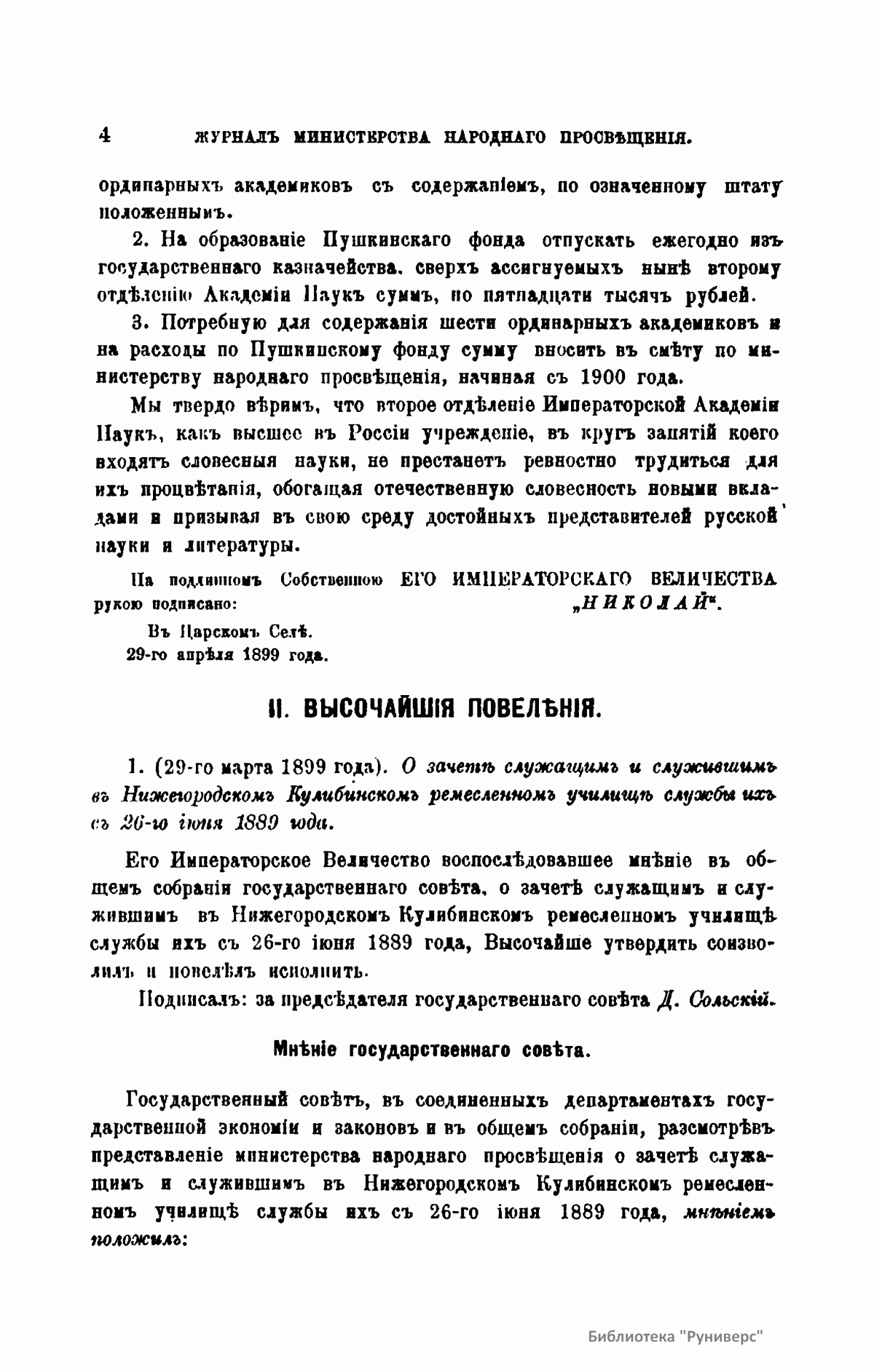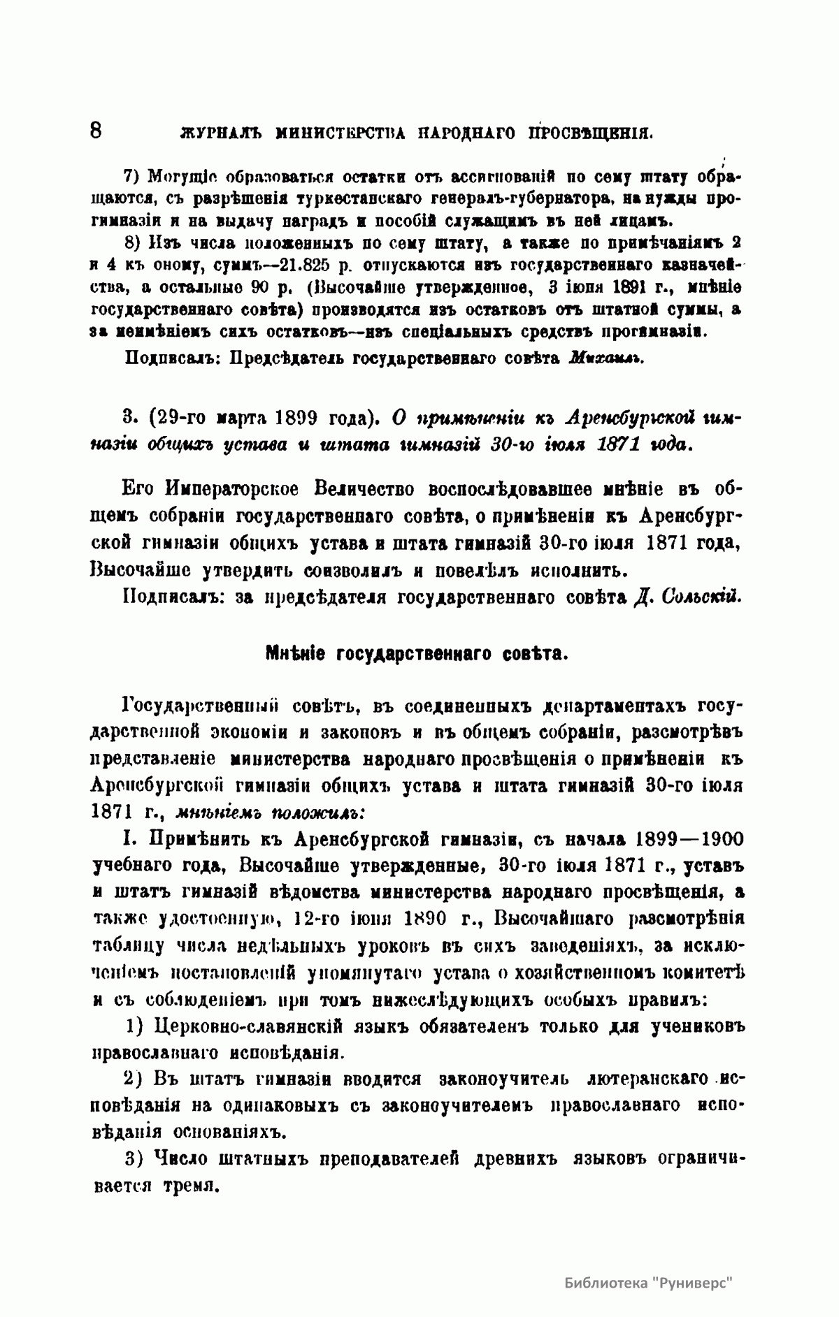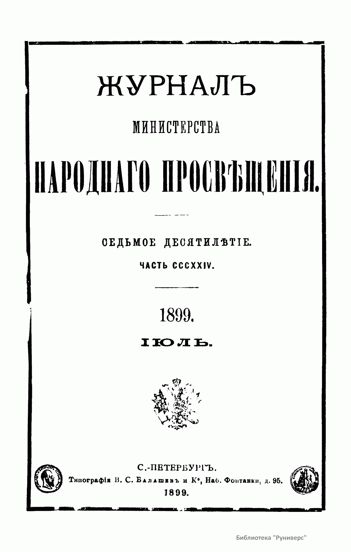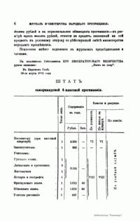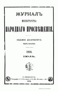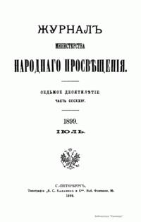 Журнал Министерства народного просвещения выходил с 1834-го по 1917 год. Официальный периодический журнал об успехах просвещения в России. Издатели журнала уверены в том, что «если для каждого человека необходим выход из грубой тьмы невежества и беспрерывное дальнейшее движение к свету, то для народов необходимо попечительное участие правительства в образовании. Только правительство имеет все средства знать и высоту успехов всемирного образования, и настоящие нужды Отечества».