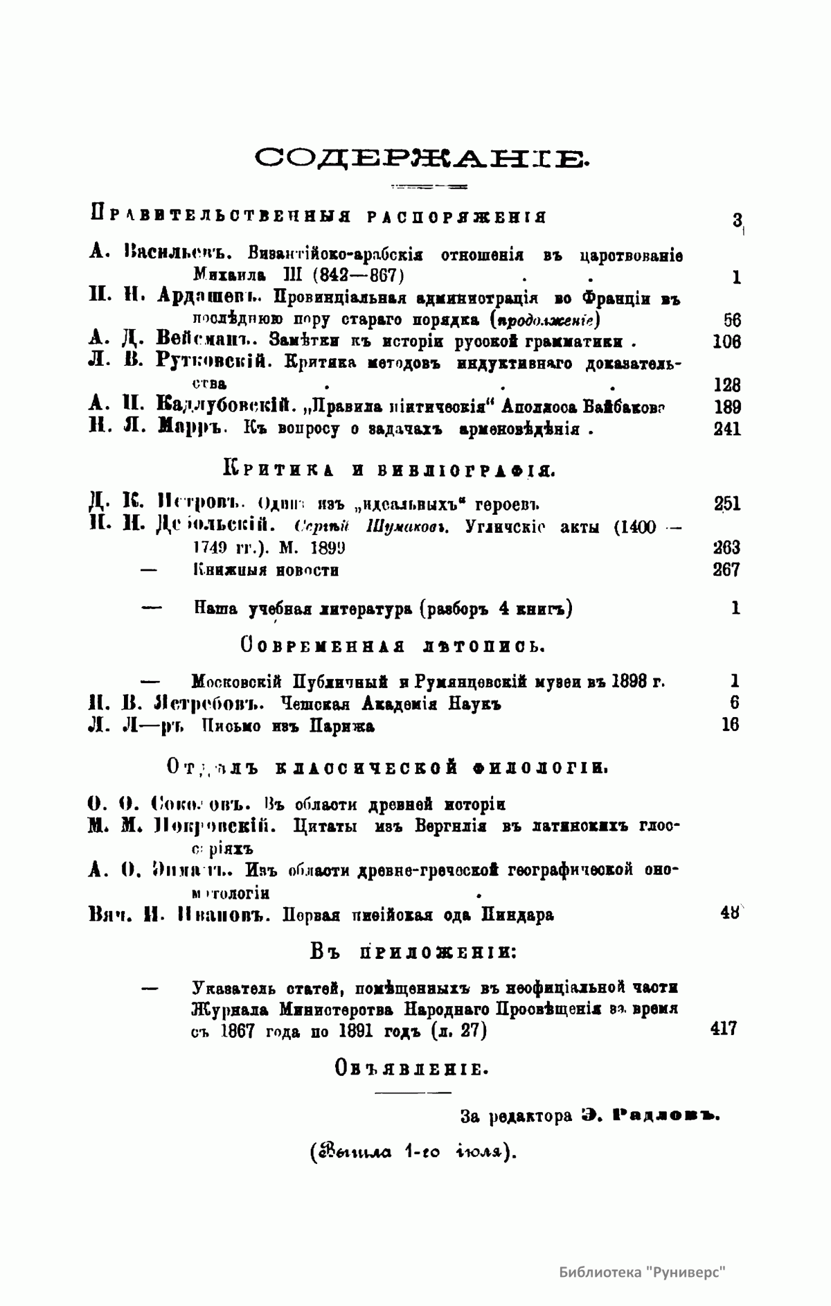 (помощник редактора, с 1899 года - редактор).