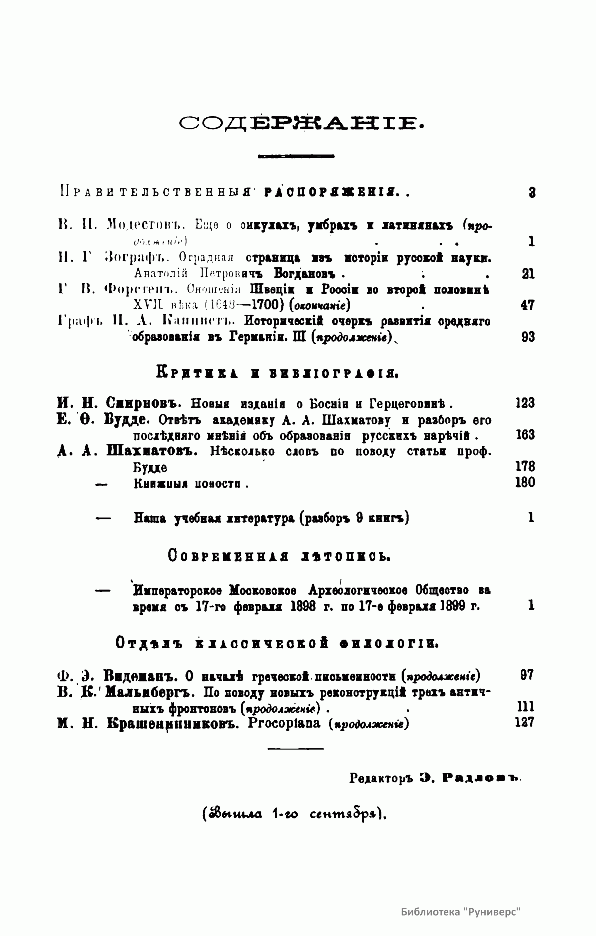 Журнал широкого профиля (гуманитарные науки), но в нем печатались философские статьи, имеется много официального материала, ценного для понимания истории философии в России.