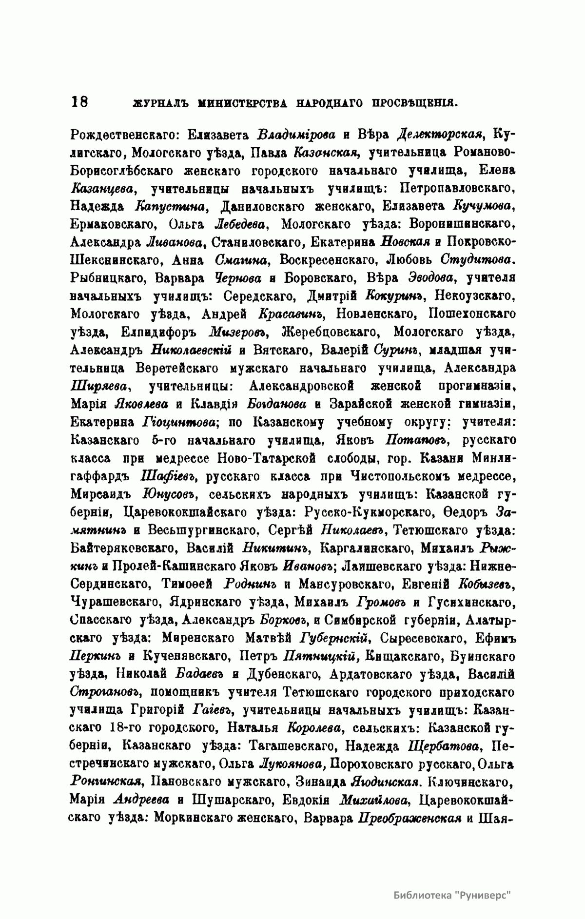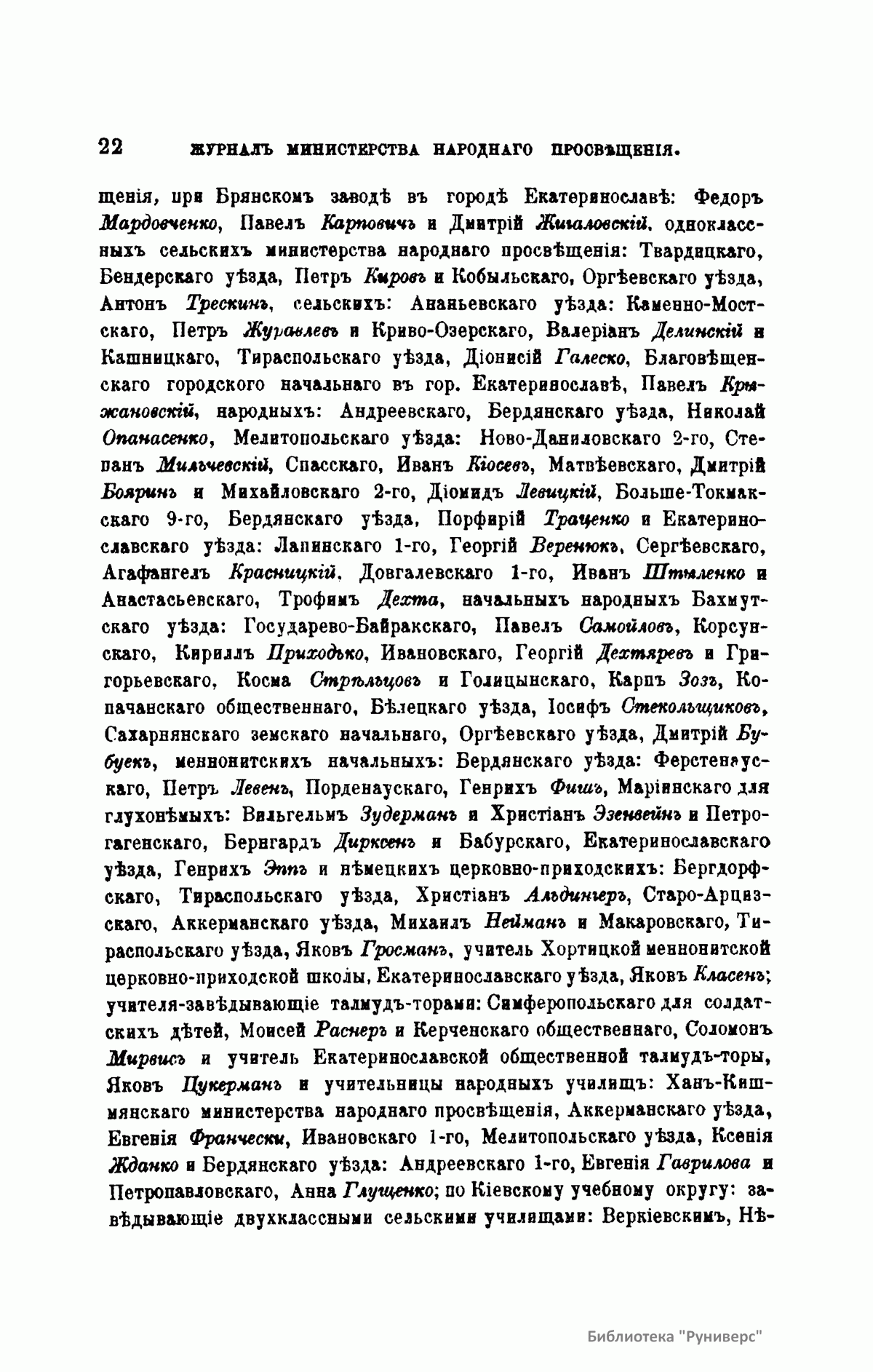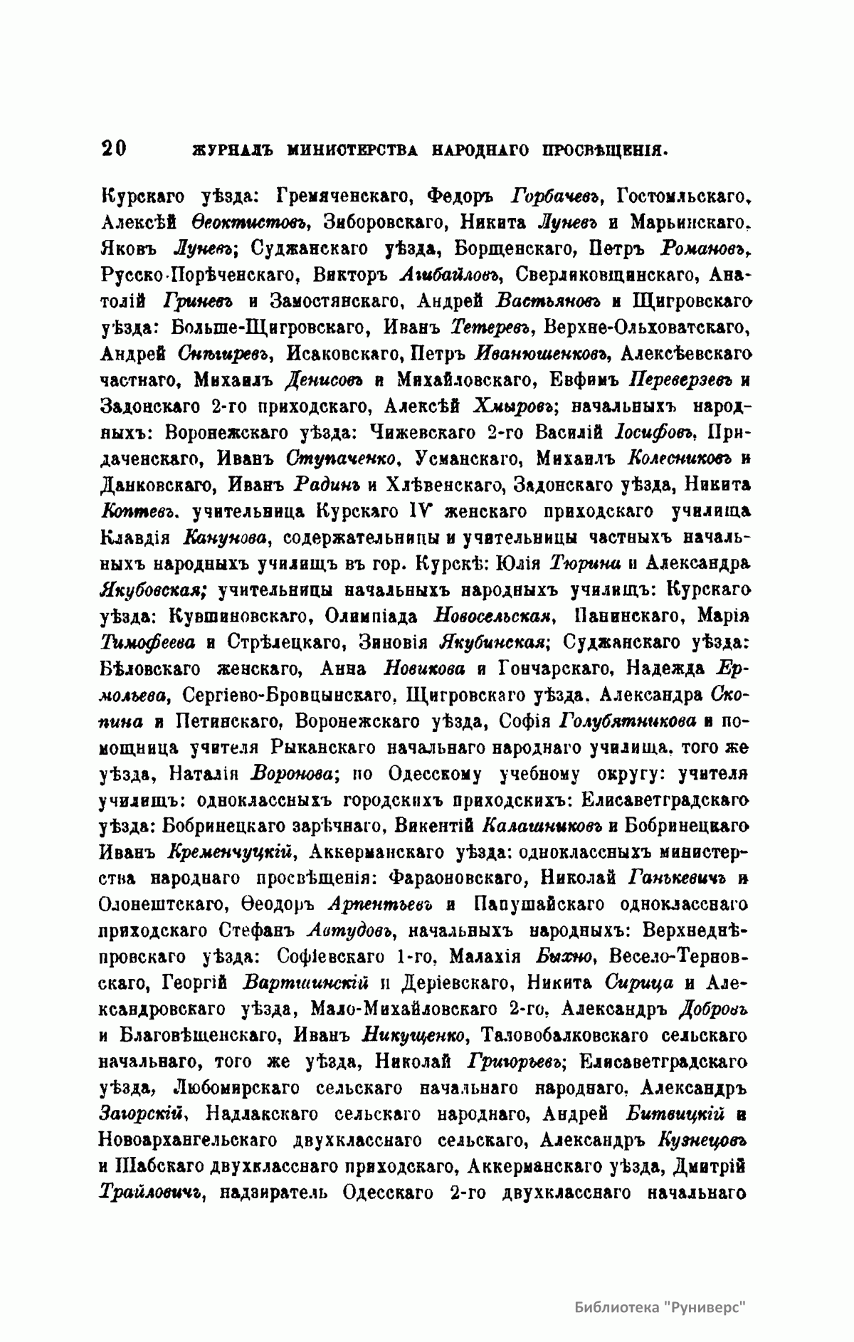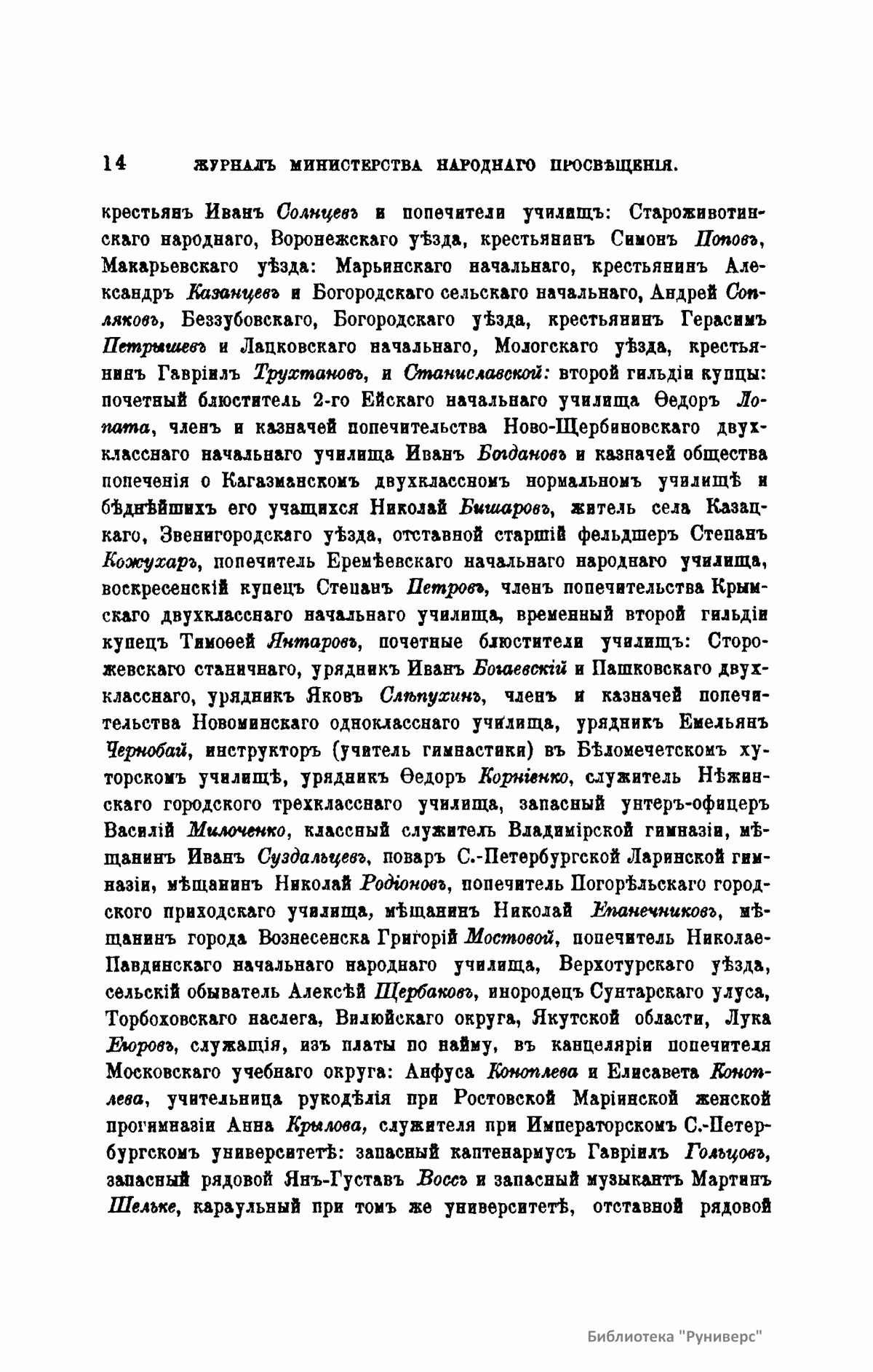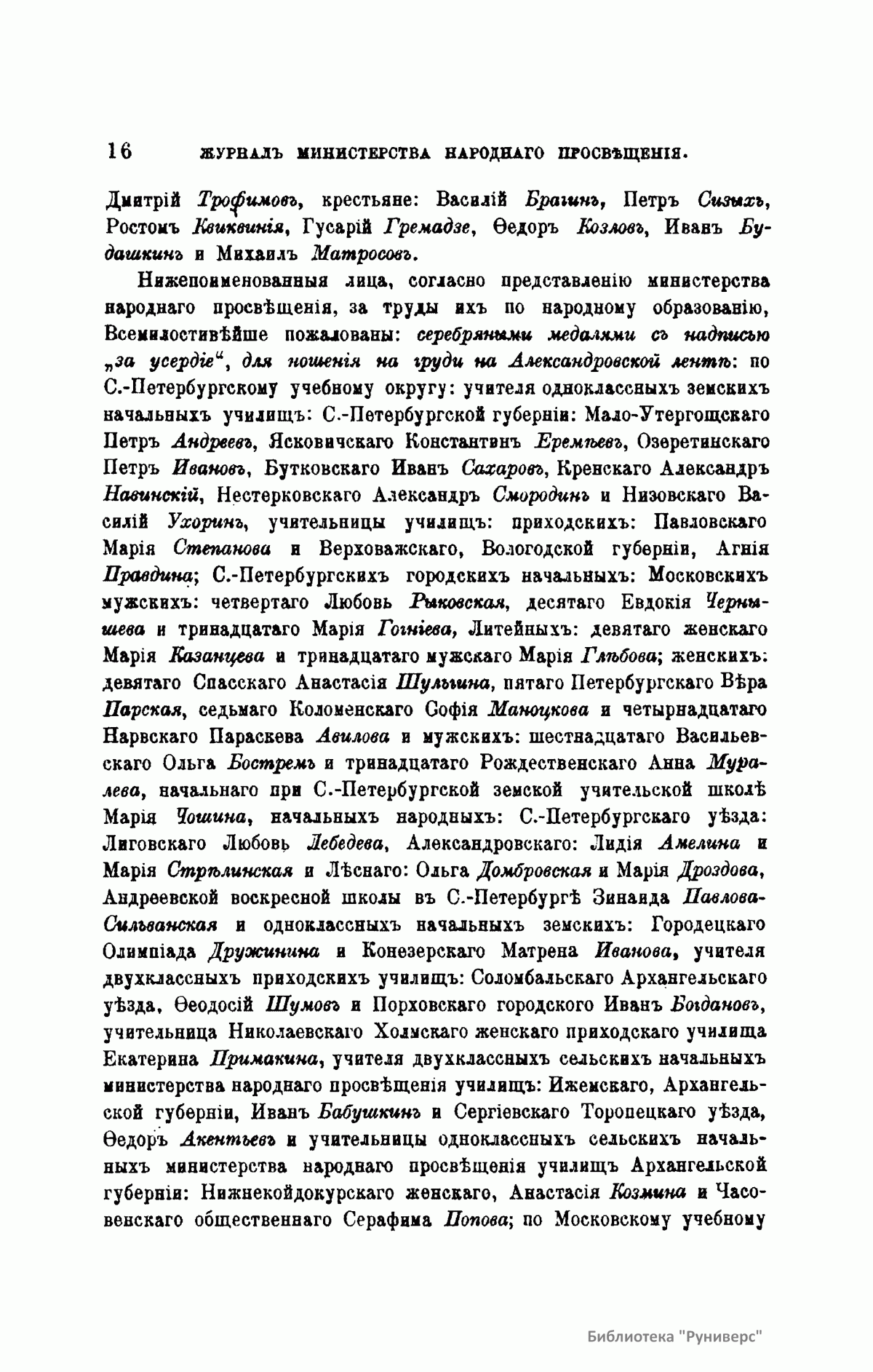 Журнал Министерства народного просвещения выходил с 1834-го по 1917 год. Официальный периодический журнал об успехах просвещения в России. Издатели журнала уверены в том, что «если для каждого человека необходим выход из грубой тьмы невежества и беспрерывное дальнейшее движение к свету, то для народов необходимо попечительное участие правительства в образовании. Только правительство имеет все средства знать и высоту успехов всемирного образования, и настоящие нужды Отечества».