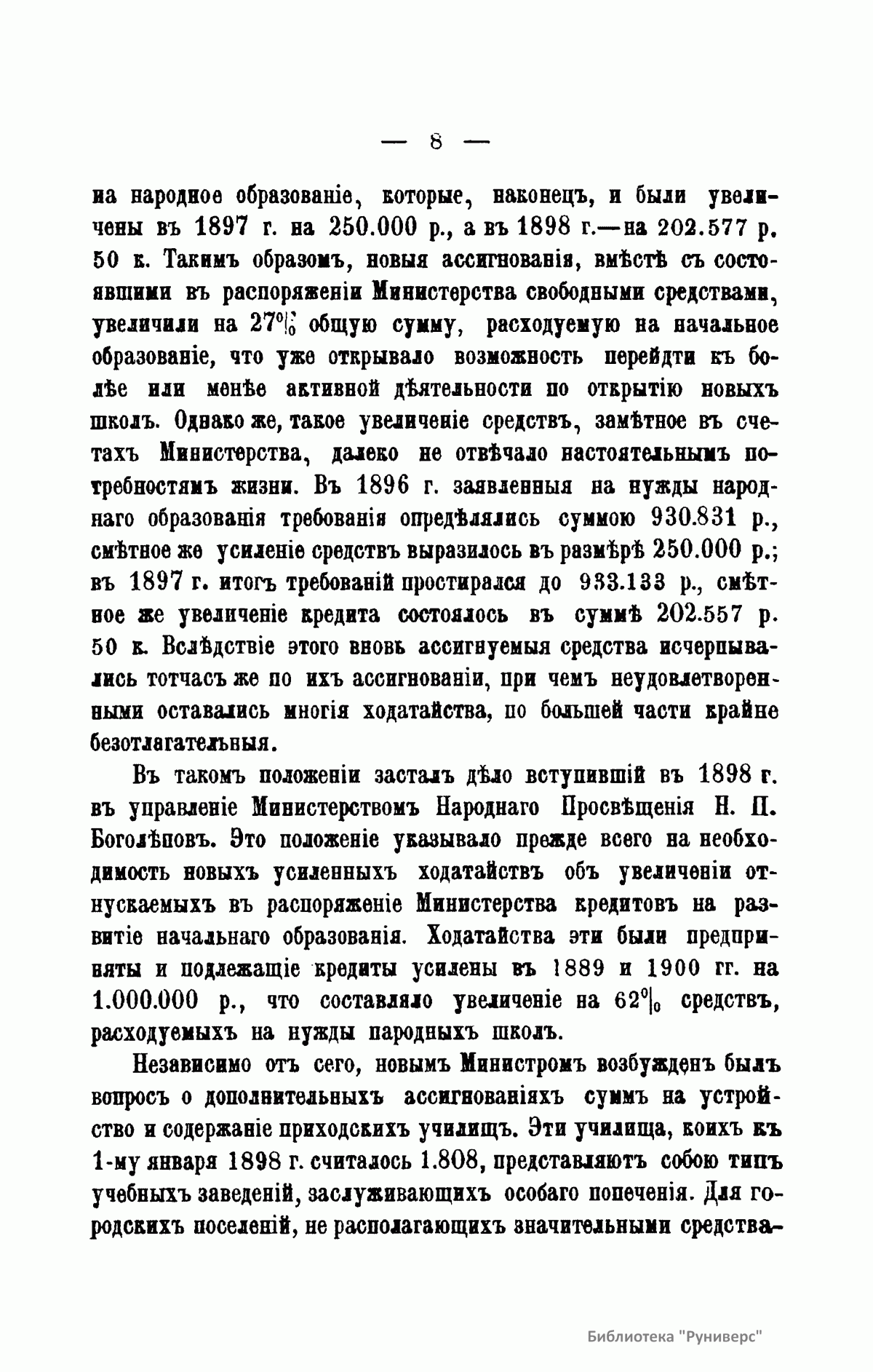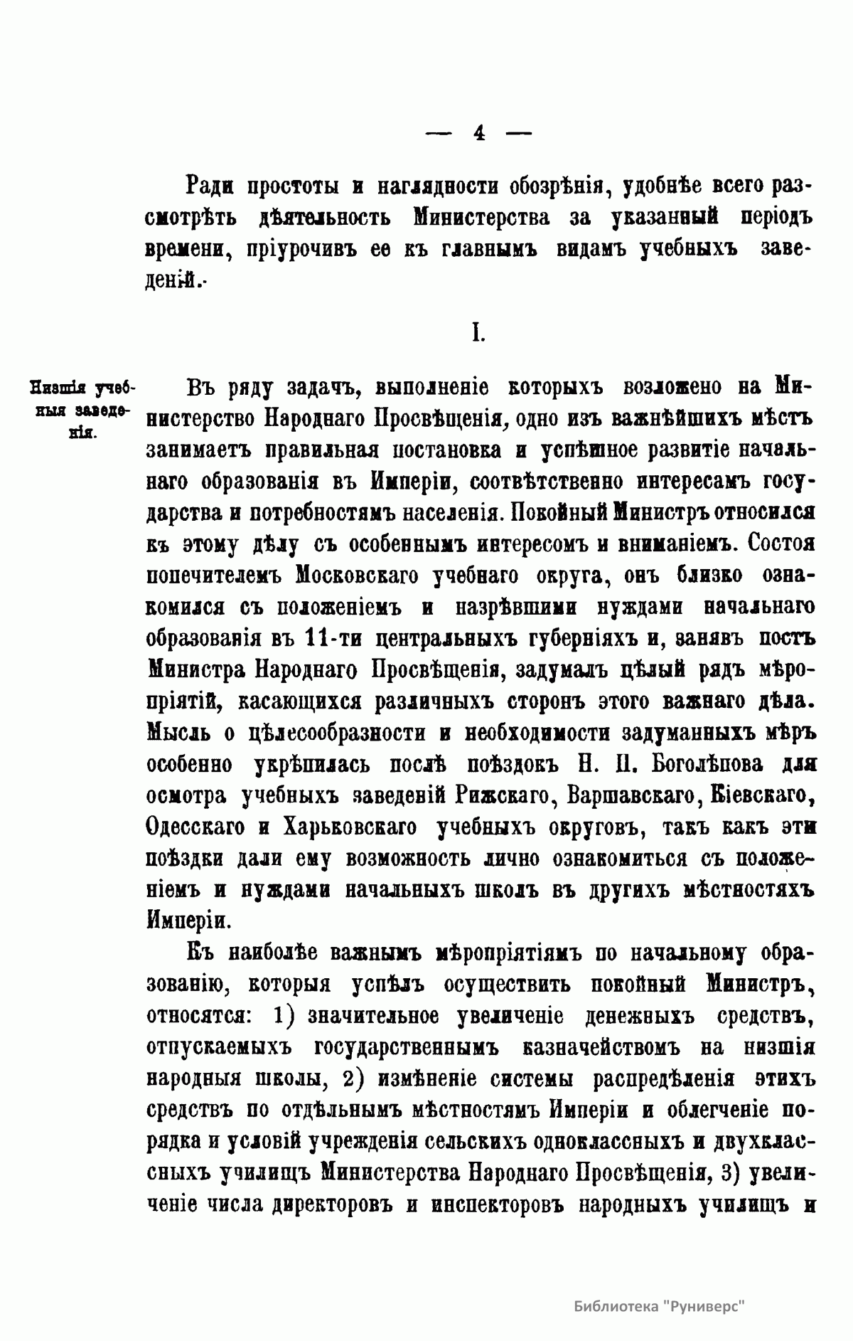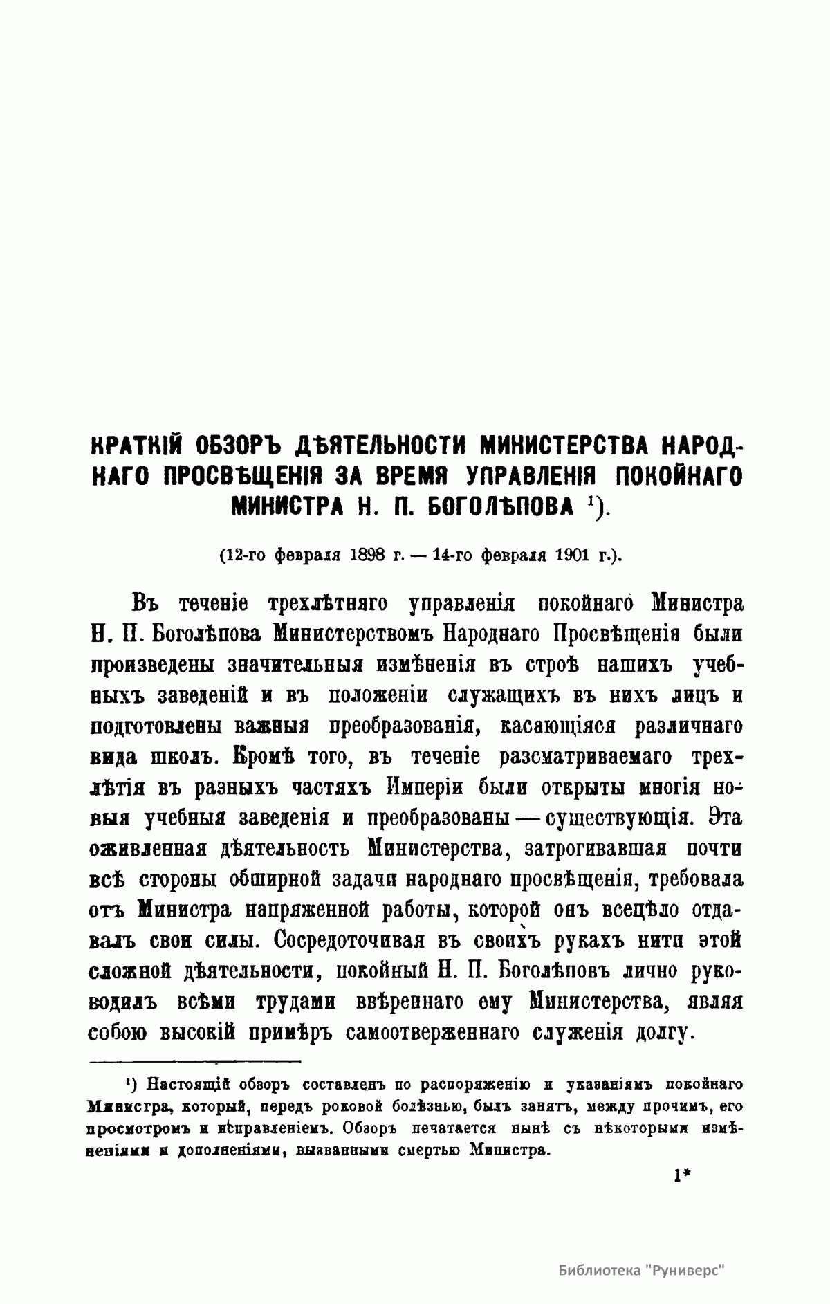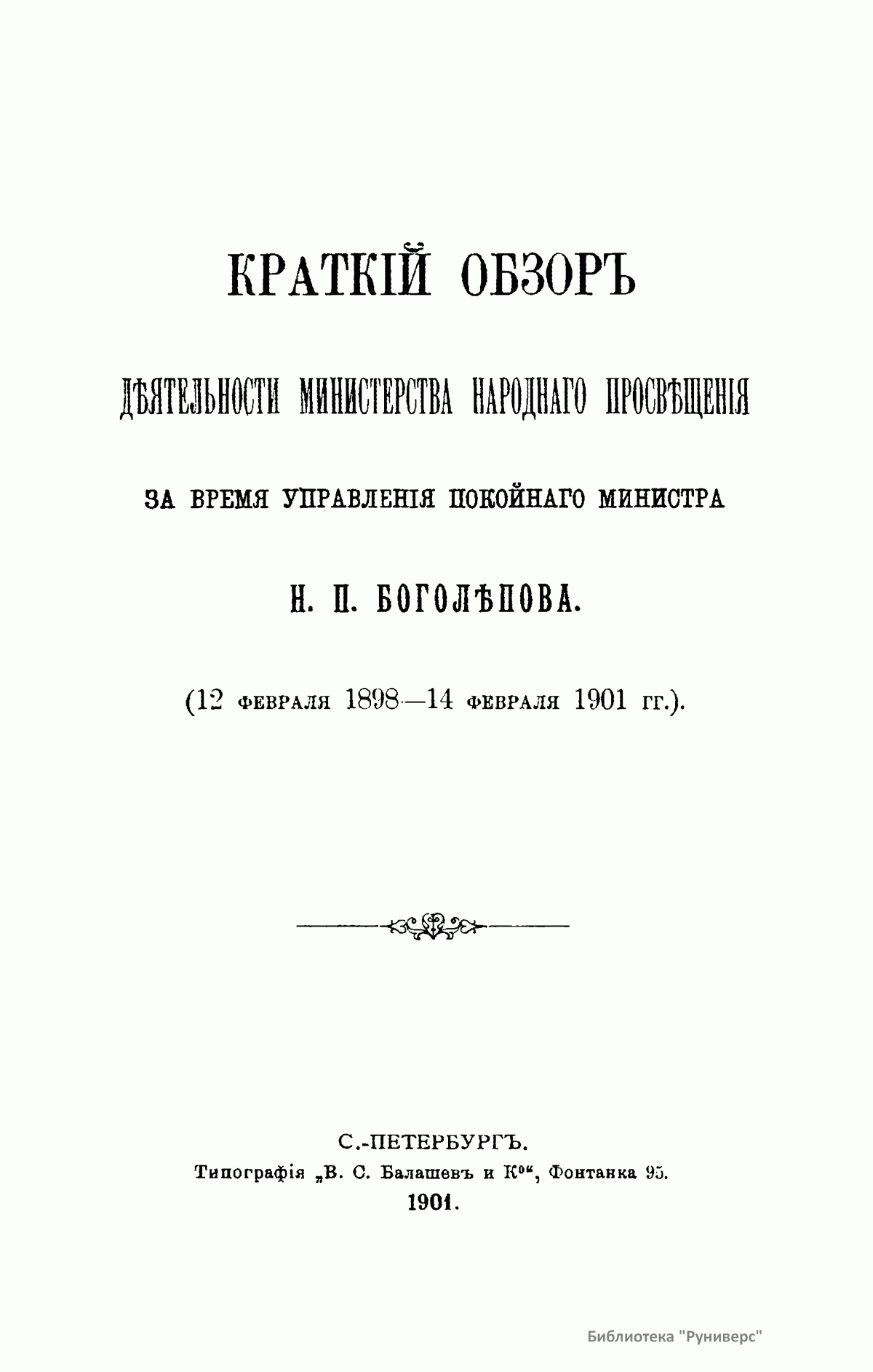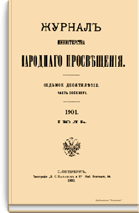 Журнал Министерства народного просвещения выходил с 1834-го по 1917 год. Официальный периодический журнал об успехах просвещения в России. Издатели журнала уверены в том, что «если для каждого человека необходим выход из грубой тьмы невежества и беспрерывное дальнейшее движение к свету, то для народов необходимо попечительное участие правительства в образовании. Только правительство имеет все средства знать и высоту успехов всемирного образования, и настоящие нужды Отечества».