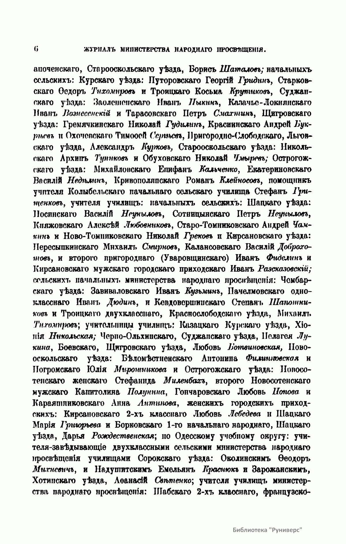 Журнал Министерства народного просвещения выходил с 1834-го по 1917 год. Официальный периодический журнал об успехах просвещения в России. Издатели журнала уверены в том, что «если для каждого человека необходим выход из грубой тьмы невежества и беспрерывное дальнейшее движение к свету, то для народов необходимо попечительное участие правительства в образовании. Только правительство имеет все средства знать и высоту успехов всемирного образования, и настоящие нужды Отечества».
