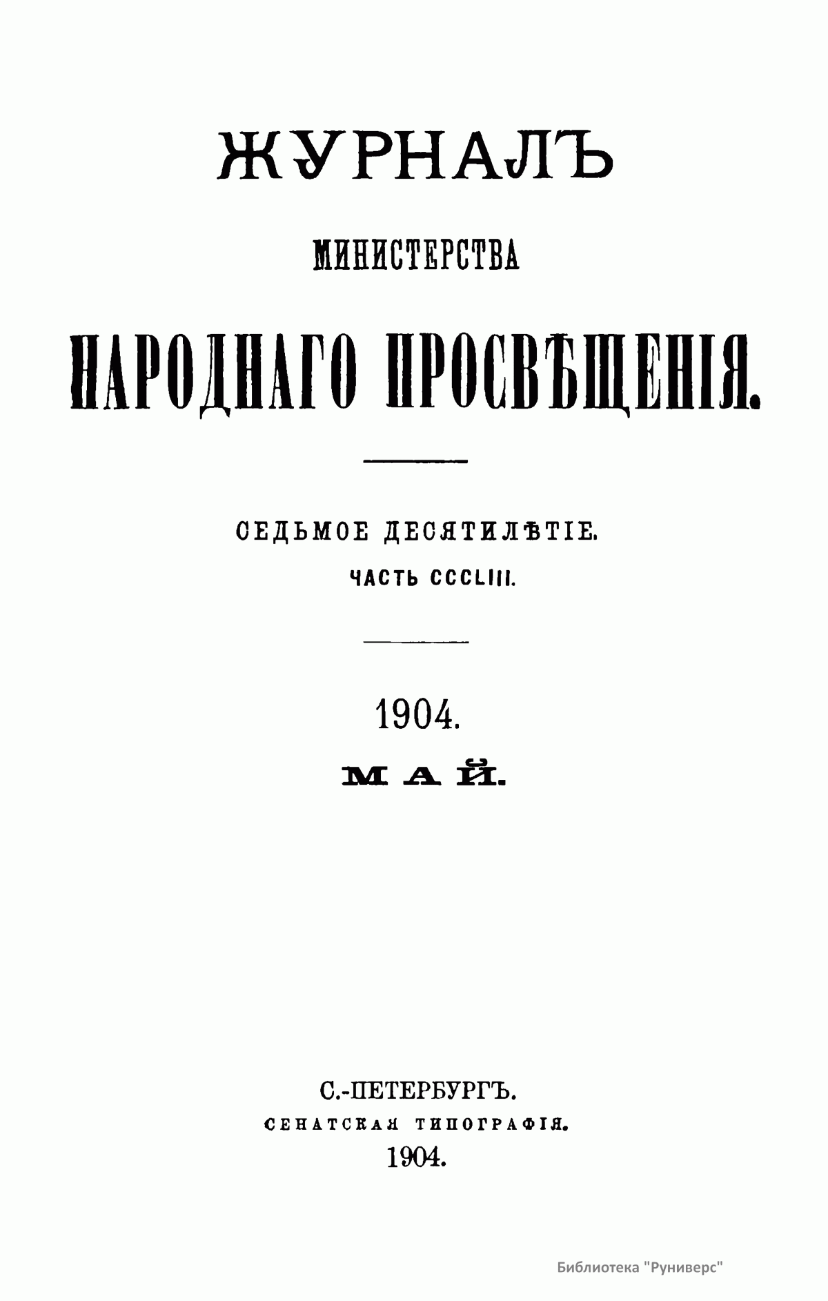 Журналъ Министерства народнаго просвѣщения. Часть CCCLIII