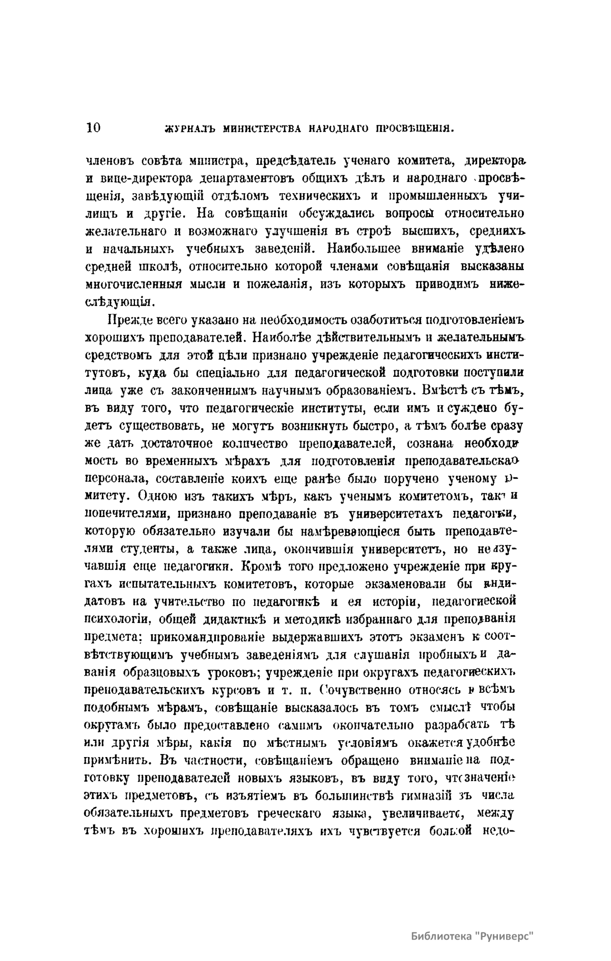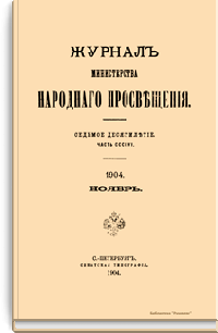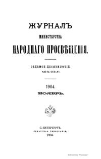 Журнал Министерства народного просвещения выходил с 1834-го по 1917 год. Официальный периодический журнал об успехах просвещения в России. Издатели журнала уверены в том, что «если для каждого человека необходим выход из грубой тьмы невежества и беспрерывное дальнейшее движение к свету, то для народов необходимо попечительное участие правительства в образовании. Только правительство имеет все средства знать и высоту успехов всемирного образования, и настоящие нужды Отечества».