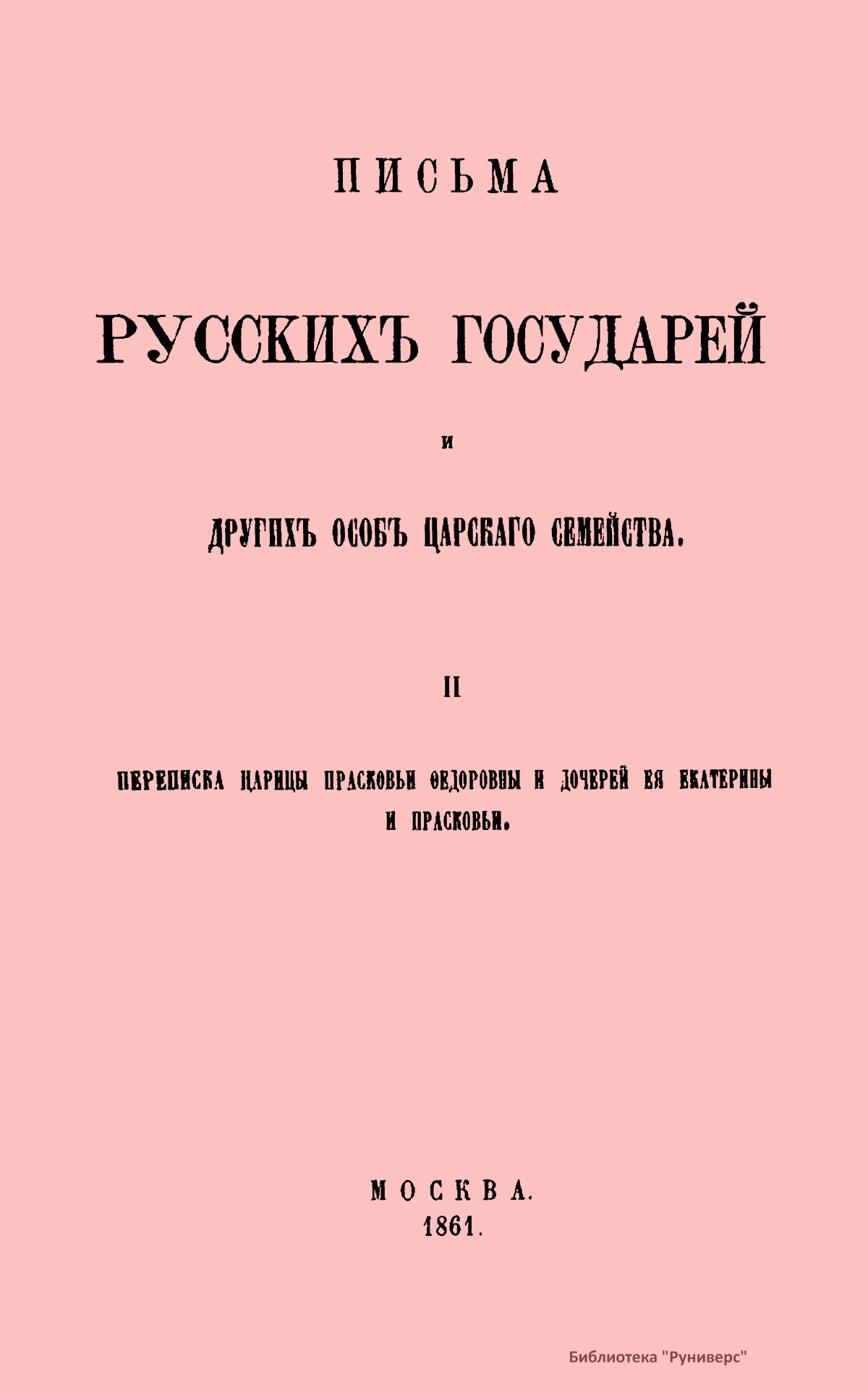 Письма русскихъ государей и другихъ особъ царскаго семейства. II. Переписка царицы Прасковьи ѳедоровны и дочерей ея Екатерины и Прасковьи