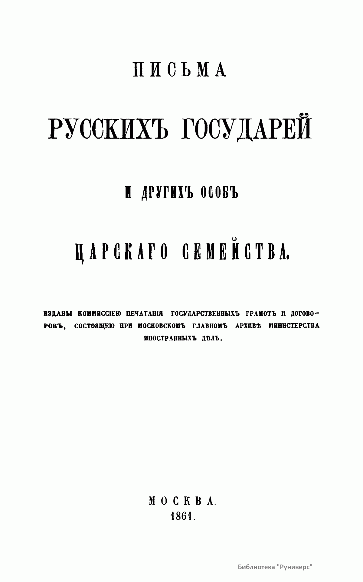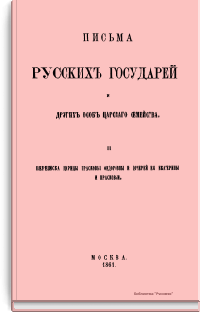 Настоящие письма изданы комиссией печатания государственных грамот и договоров, состоящей при Московском главном архиве министерства иностранных дел. Кроме материалов Главного архива комиссия пользовалась собраниями Государственного архива С.-Петербурга, Императорской публичной библиотеки и Румянцевского музея. Письма русских государей и других особ царского семейства представляют собой любопытный исторический памятник.
