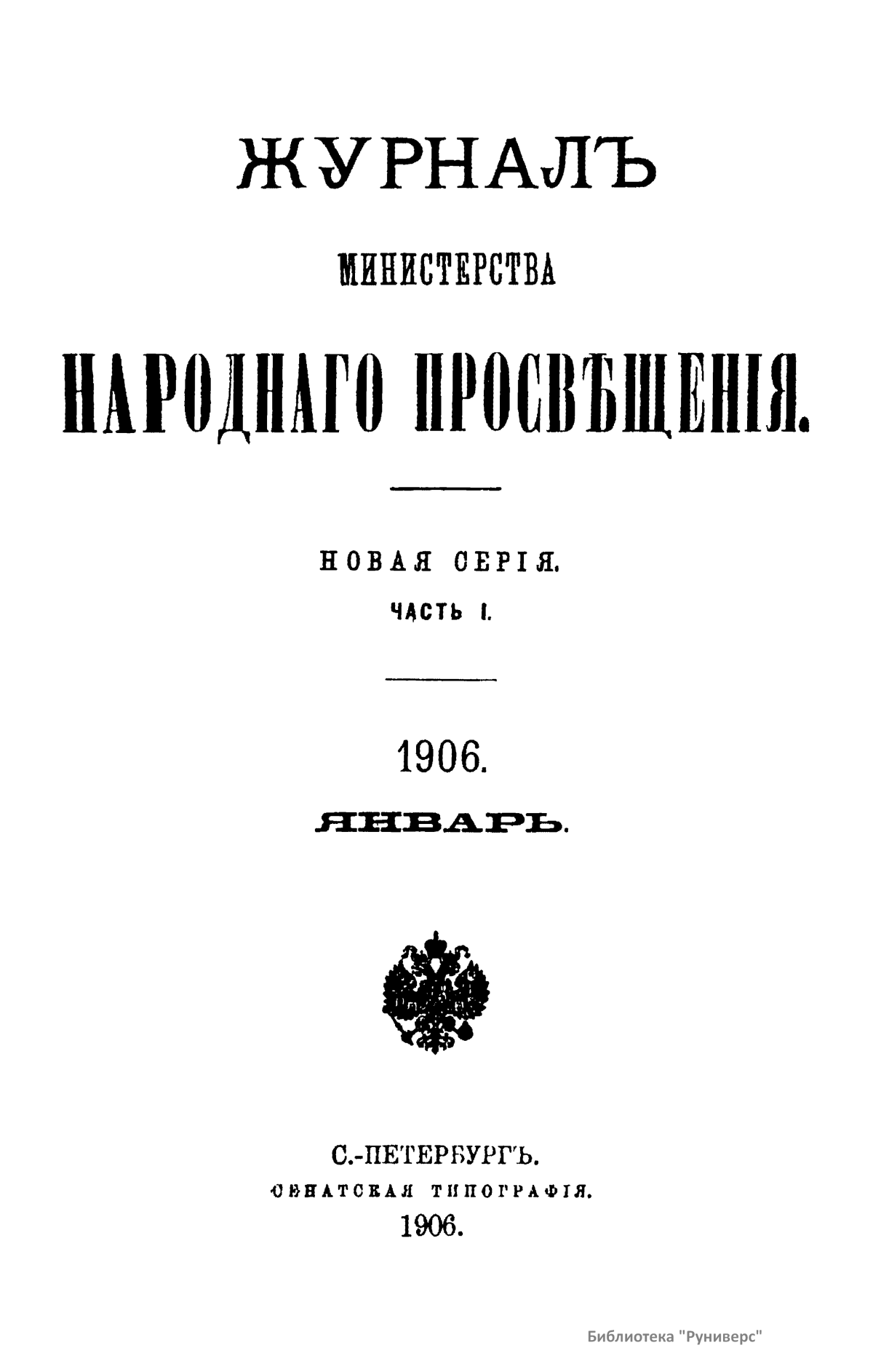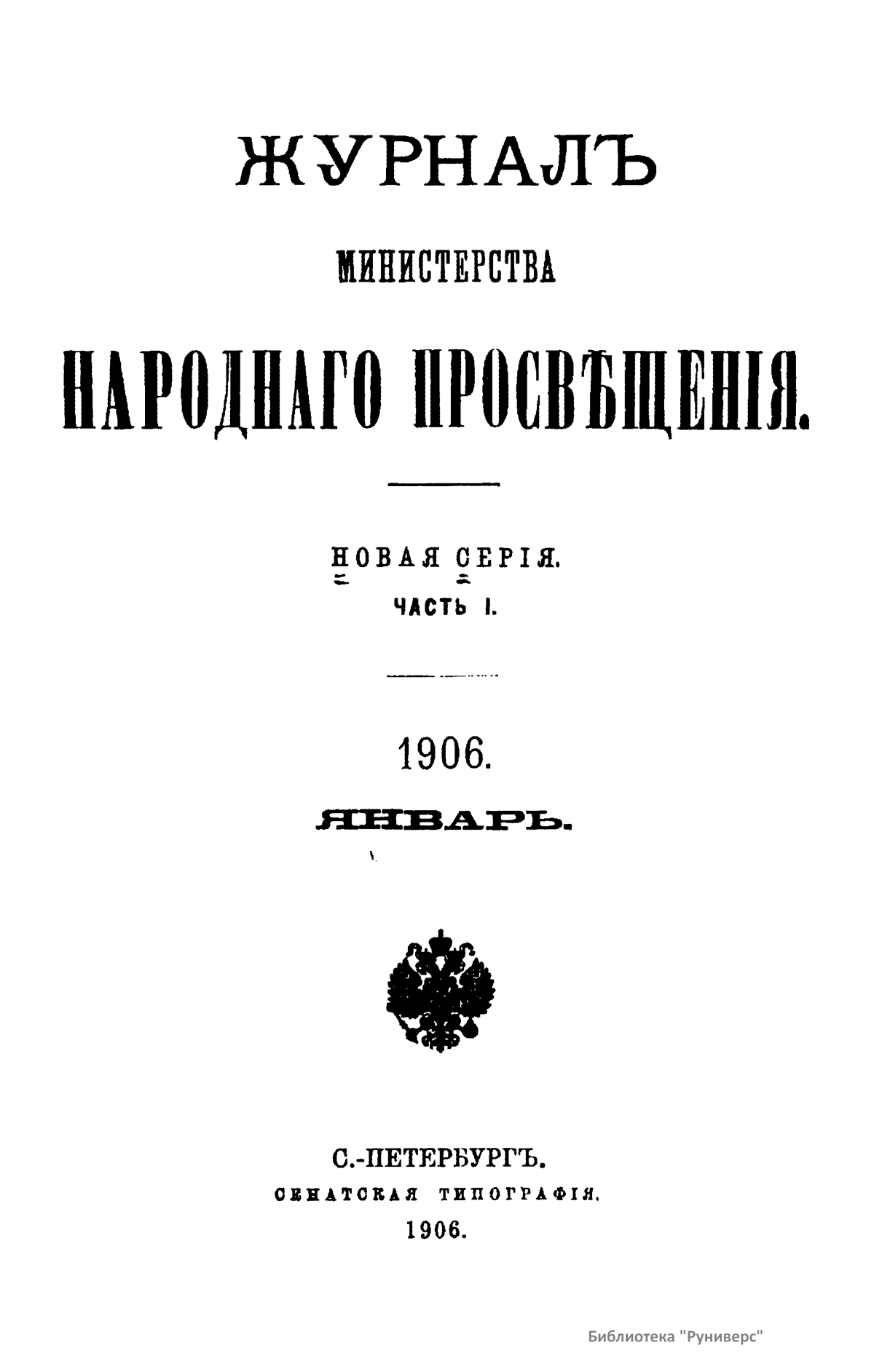 Журналъ Министерства народнаго просвѣщения. Новая серiя. Часть I
