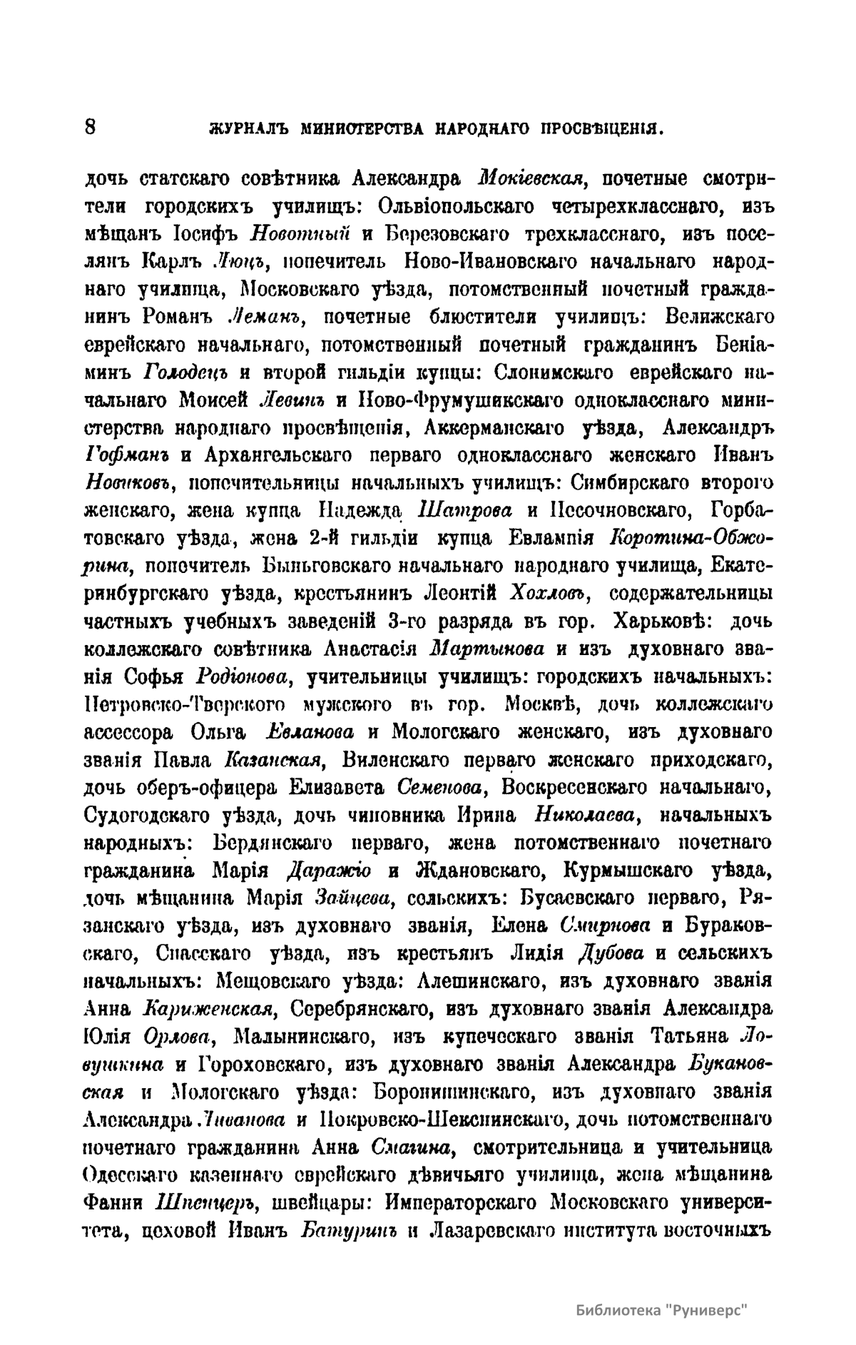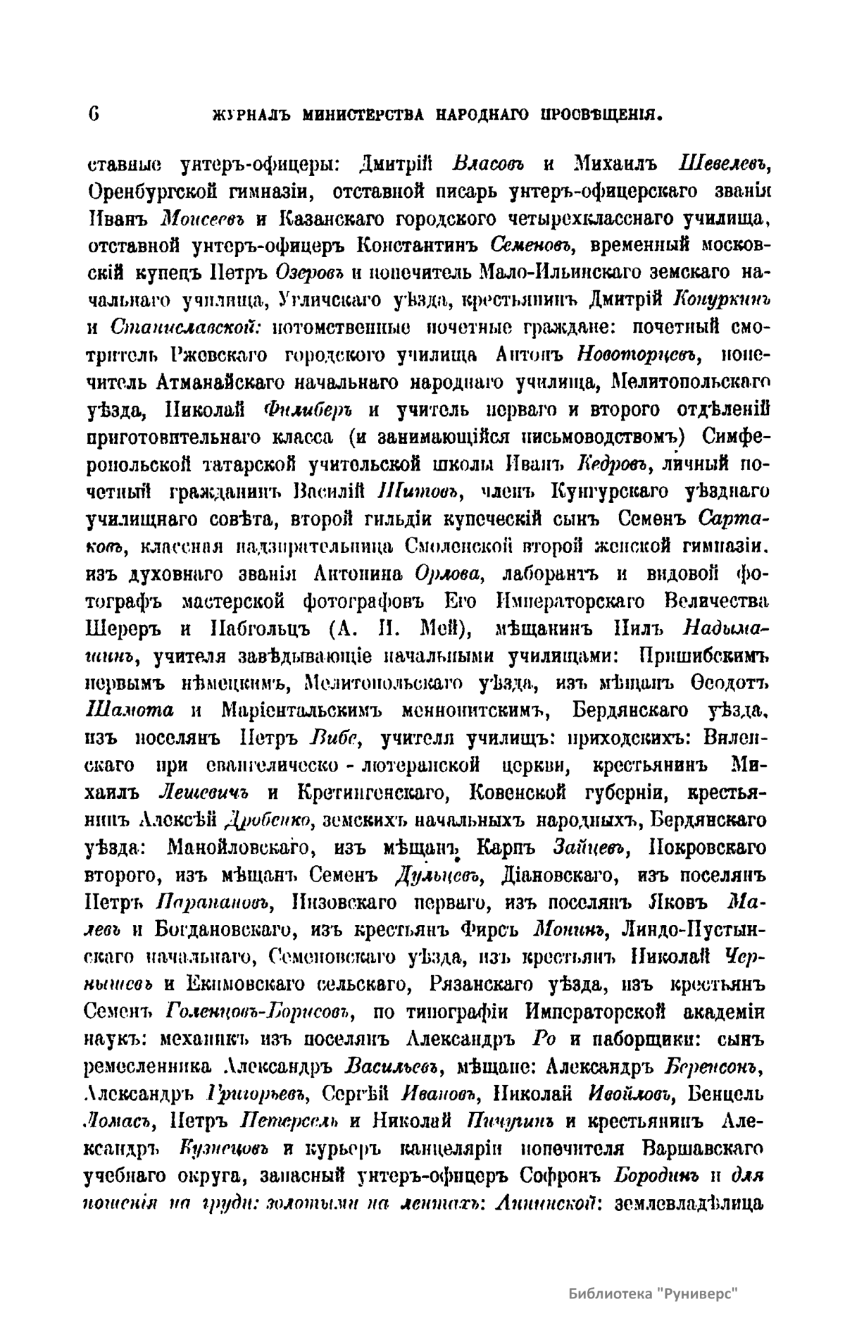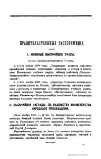 Журнал Министерства народного просвещения выходил с 1834-го по 1917 год. Официальный периодический журнал об успехах просвещения в России. Издатели журнала уверены в том, что «если для каждого человека необходим выход из грубой тьмы невежества и беспрерывное дальнейшее движение к свету, то для народов необходимо попечительное участие правительства в образовании. Только правительство имеет все средства знать и высоту успехов всемирного образования, и настоящие нужды Отечества».