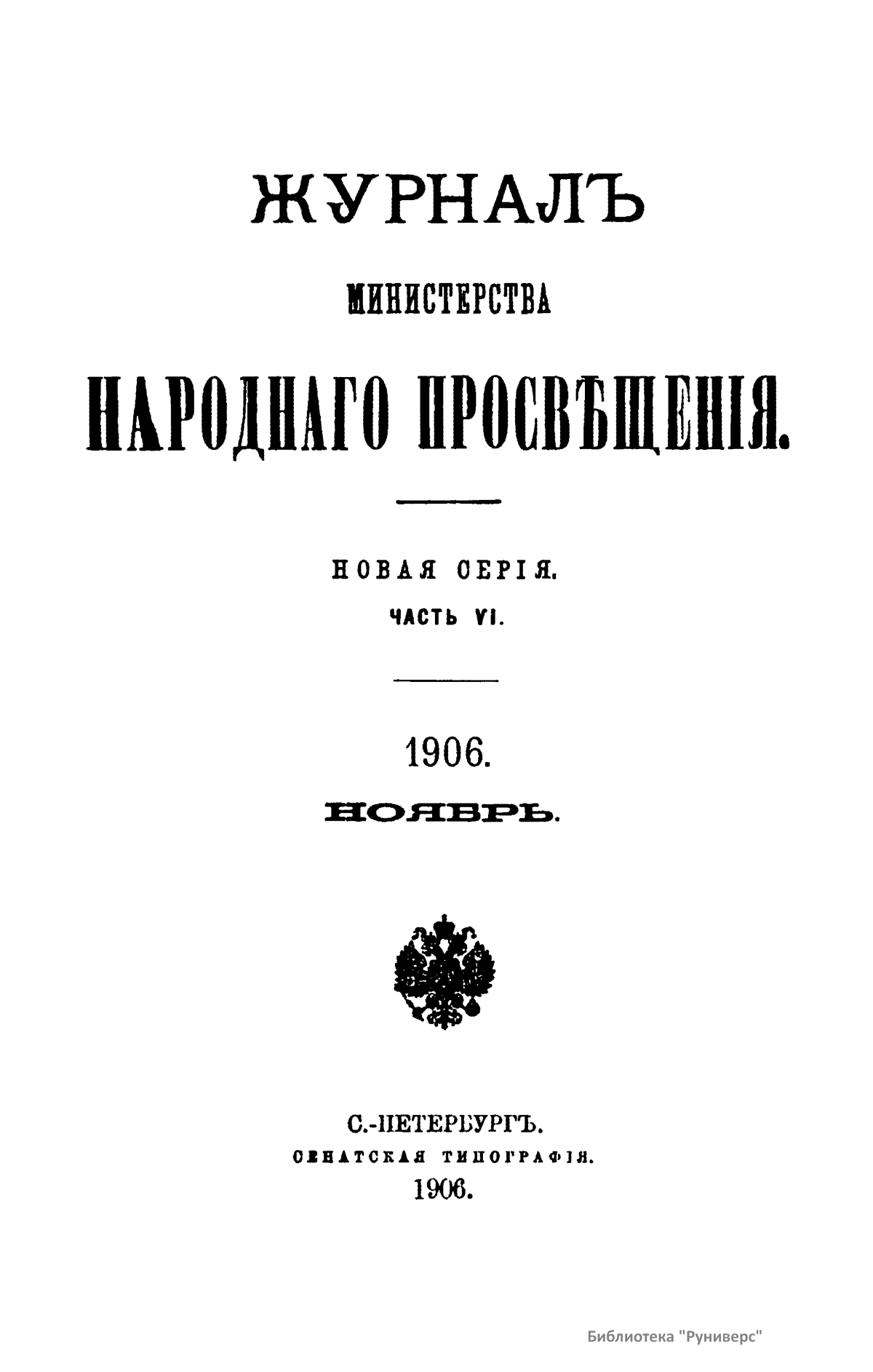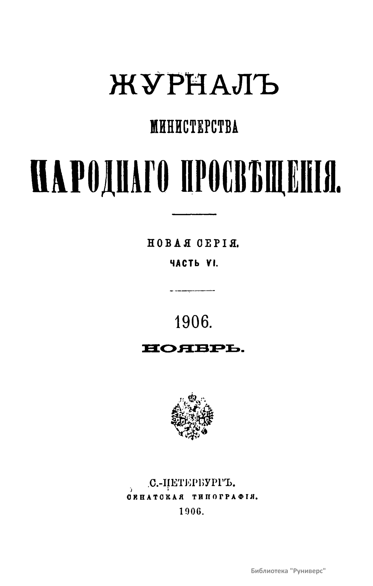 Журнал Министерства народного просвещения. Новая серия. Часть VI