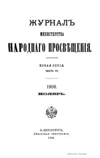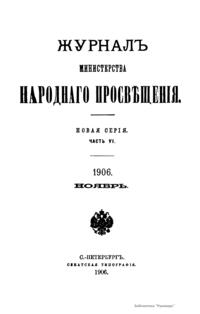 Журналъ Министерства народнаго просвѣщения. Новая серiя. Часть VI