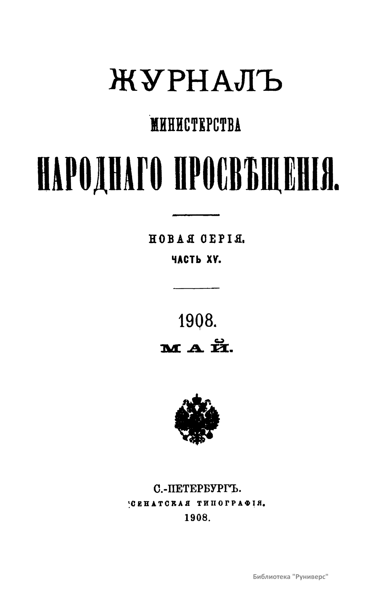 Журналъ Министерства народнаго просвѣщения. Новая серiя. Часть XV