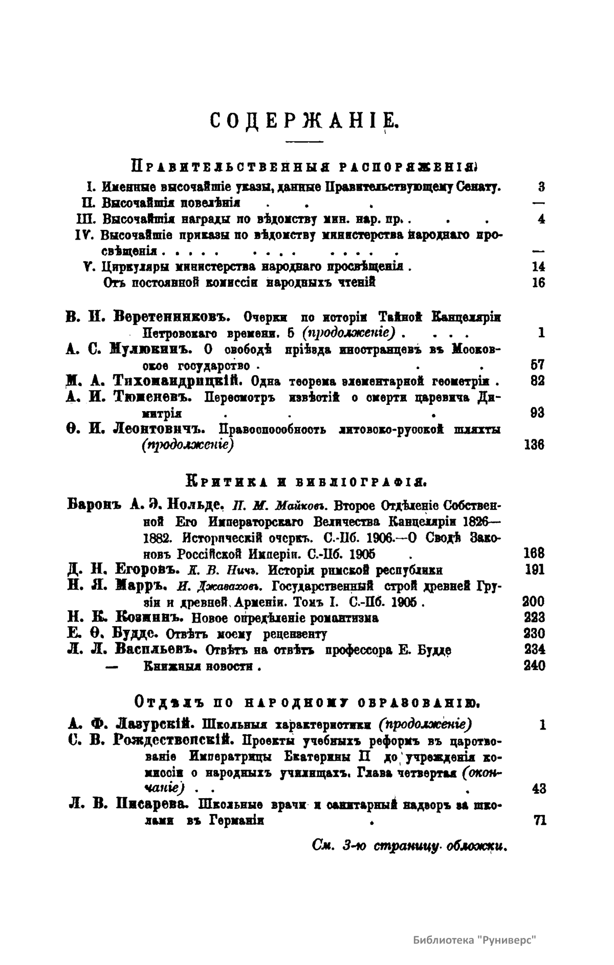 С 1864 года стали выходить указатели к повременным изданиям Министерства народного просвещения начиная с 1803 года.