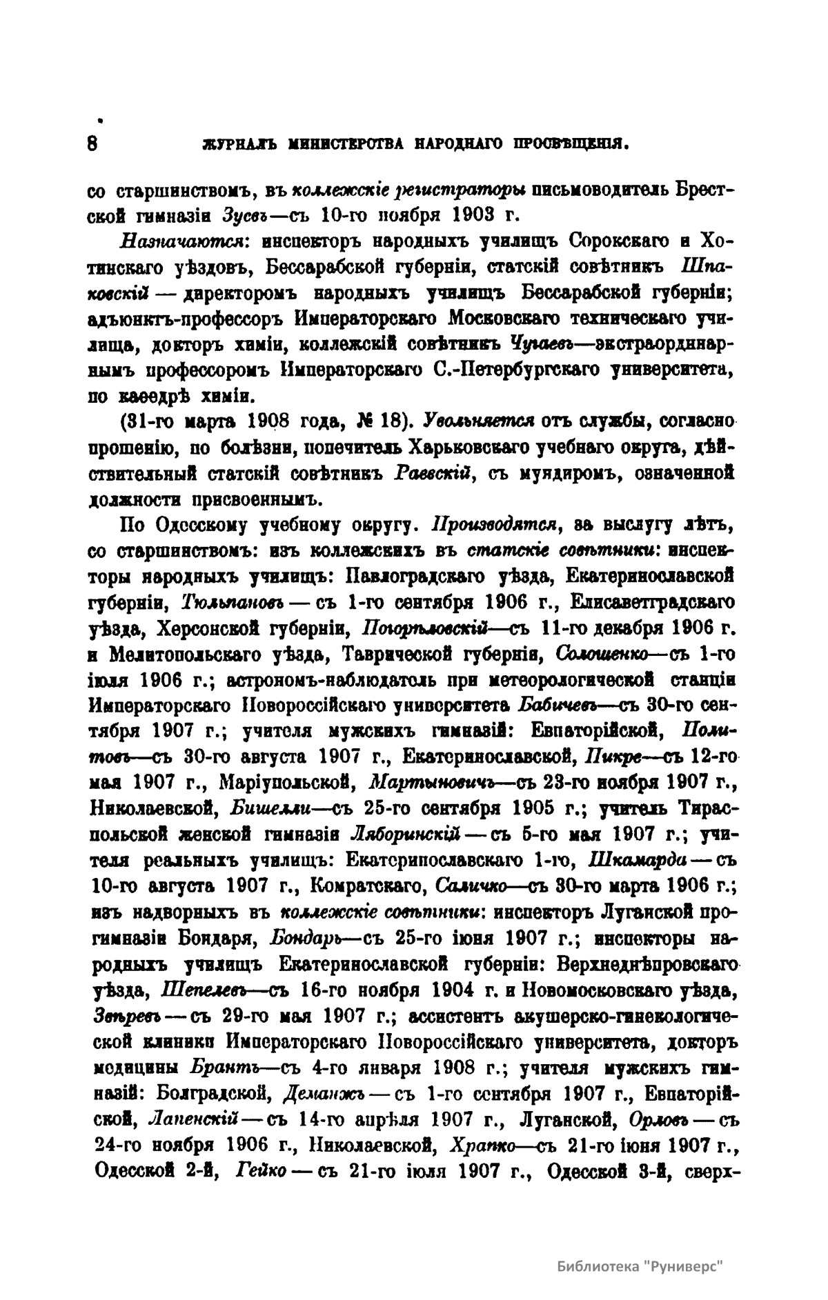 Журнал Министерства народного просвещения выходил с 1834-го по 1917 год. Официальный периодический журнал об успехах просвещения в России. Издатели журнала уверены в том, что «если для каждого человека необходим выход из грубой тьмы невежества и беспрерывное дальнейшее движение к свету, то для народов необходимо попечительное участие правительства в образовании. Только правительство имеет все средства знать и высоту успехов всемирного образования, и настоящие нужды Отечества».