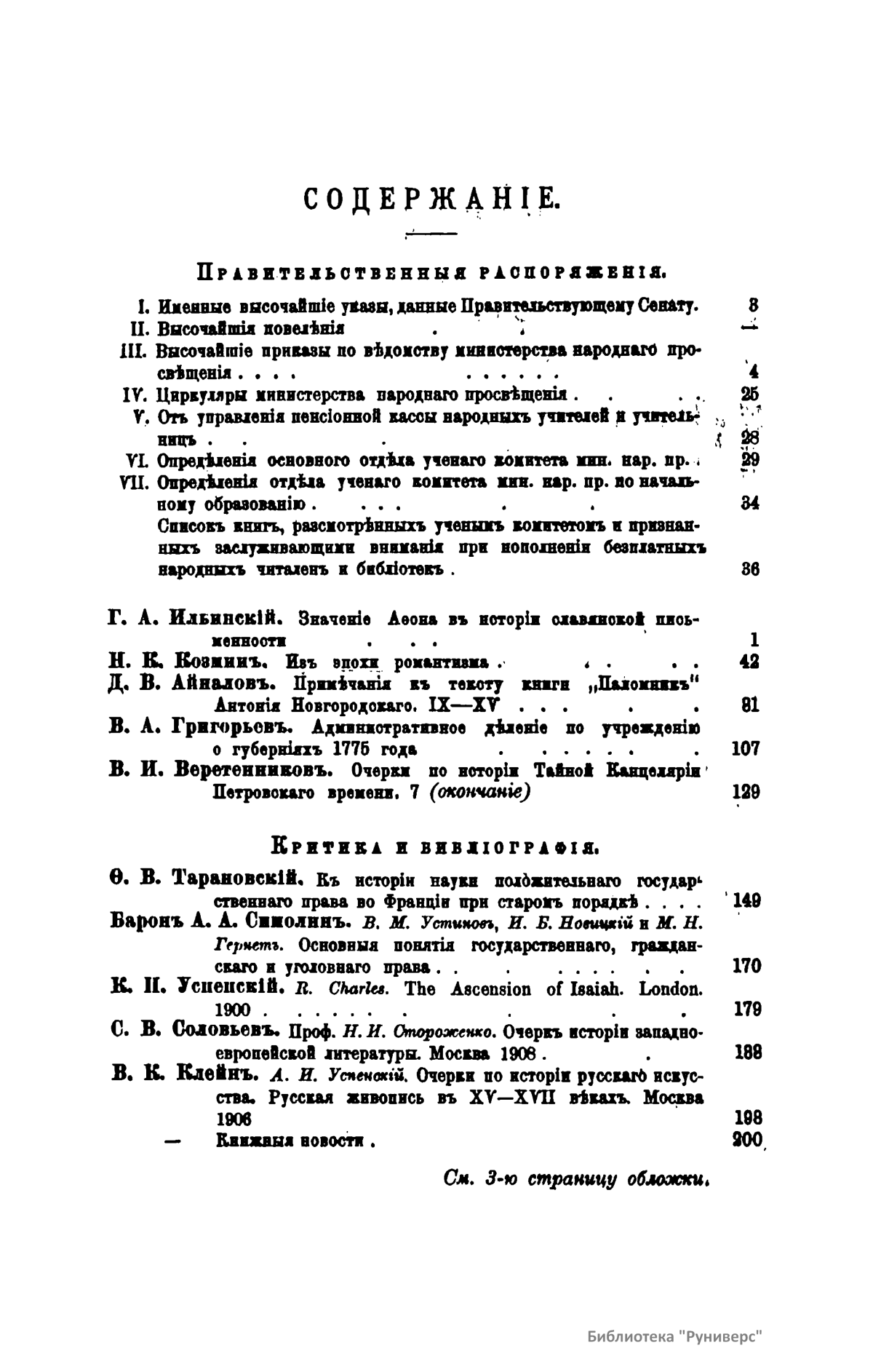 С 1864 года стали выходить указатели к повременным изданиям Министерства народного просвещения начиная с 1803 года.