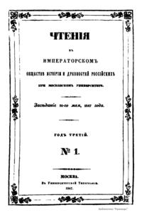 Чтенiя въ Императорскомъ Обществѣ Исторiи и Древностей Россiйскихъ при Московскомъ Университетѣ. Годъ третiй. №1
