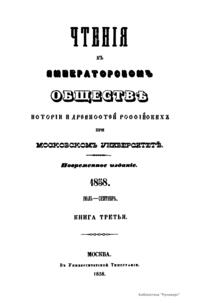 Чтения в Императорском Обществе Истории и Древностей Российских при Московском Университете. 1858. Июль-Сентябрь. Книга третья