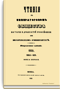 Чтенiя въ Императорскомъ Обществѣ Исторiи и Древностей Россiйскихъ при Московскомъ Университетѣ. 1859. Генварь-Мартъ. Книга первая