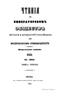 Чтения в Императорском Обществе Истории и Древностей Российских при Московском Университете. 1859. Июль-Сентябрь. Книга третья