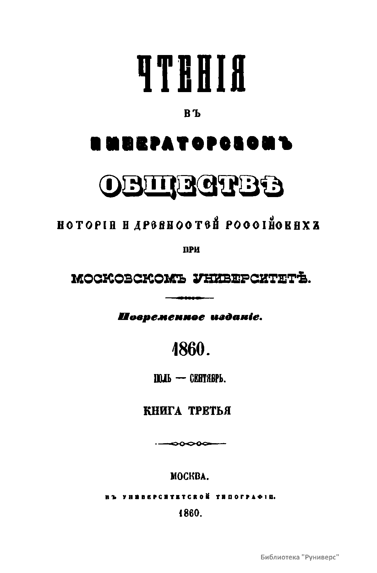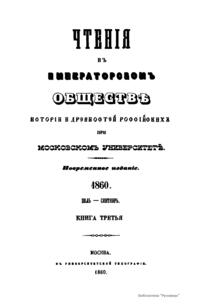 Чтенiя въ Императорскомъ Обществѣ Исторiи и Древностей Россiйскихъ при Московскомъ Университетѣ. 1860. Iюль-Сентябрь. Книга третья