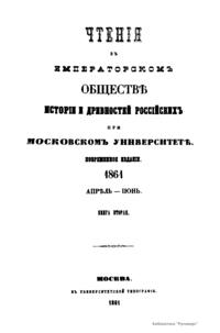 Чтенiя въ Императорскомъ Обществѣ Исторiи и Древностей Россiйскихъ при Московскомъ Университетѣ. 1861. Апрѣль-Iюнь. Книга вторая