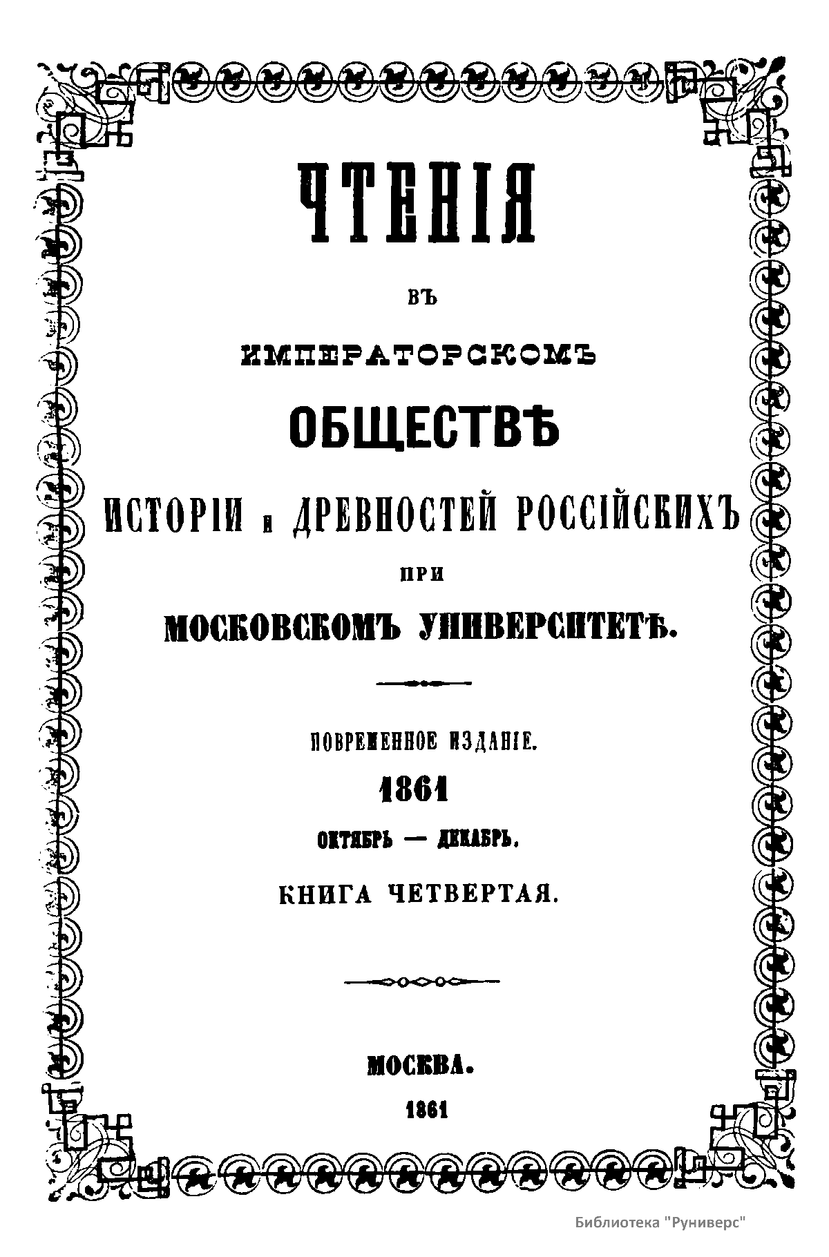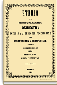 Чтенiя въ Императорскомъ Обществѣ Исторiи и Древностей Россiйскихъ при Московскомъ Университетѣ. 1861. Октябрь-Декабрь. Книга четвертая
