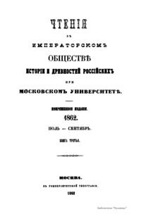 Чтения в Императорском Обществе Истории и Древностей Российских при Московском Университете. 1862. Июль-Сентябрь. Книга третья