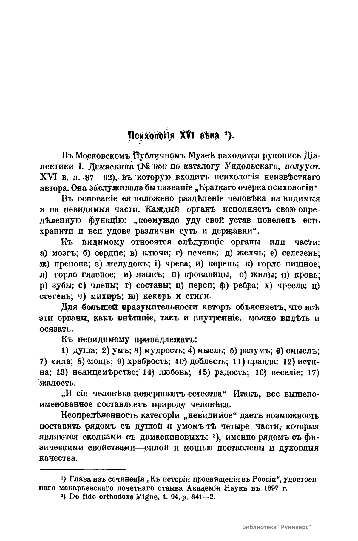В данной работе автор продолжает свои попытки воссоздания истории отечественной мысли. Книга посвящена проблемам российской и зарубежной психологии и философии XVI-XVIII вв., исследованию источников, выявлению влияния, становления терминологию Автор впервые среди российских исследователей дал краткий пересказ содержания трактата «О человечестем естестве, о видимем и невидимем», который по целому ряду признаков считается самостоятельным древне-русским произведением («Психология XVI века»). В своей работе она описывает и анализирует ряд источников по древнерусской философии («Тайная тайных»), а также дает обзор существенных моментов современной ей мысли (Ницше, прагматизм), касается ряда этических проблем.
