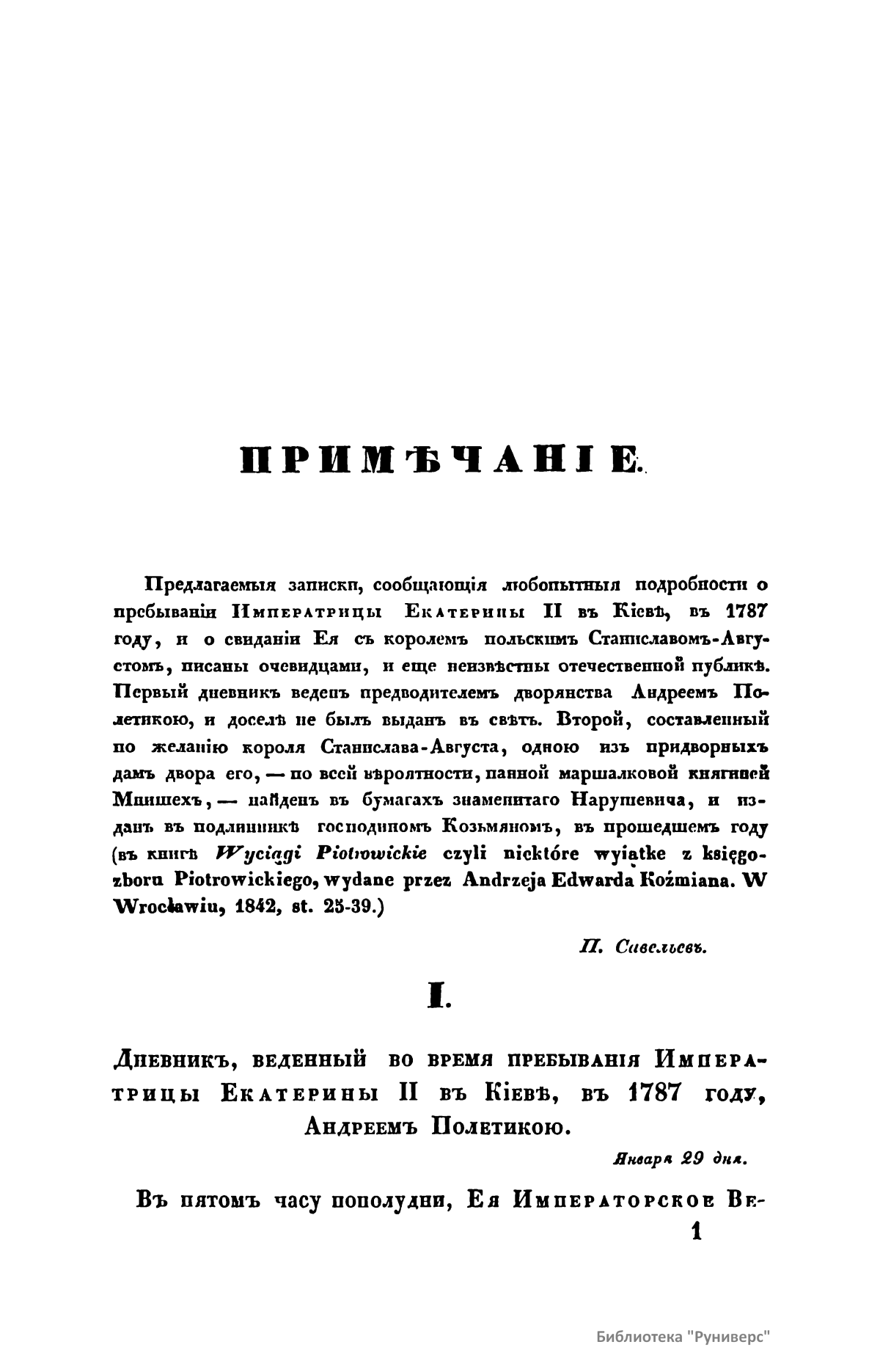 Записки о пребывании Императрицы Екатерины Второй в Киеве, в 1787 году, и о свидании ее с Станиславом-Августом Королем Польским