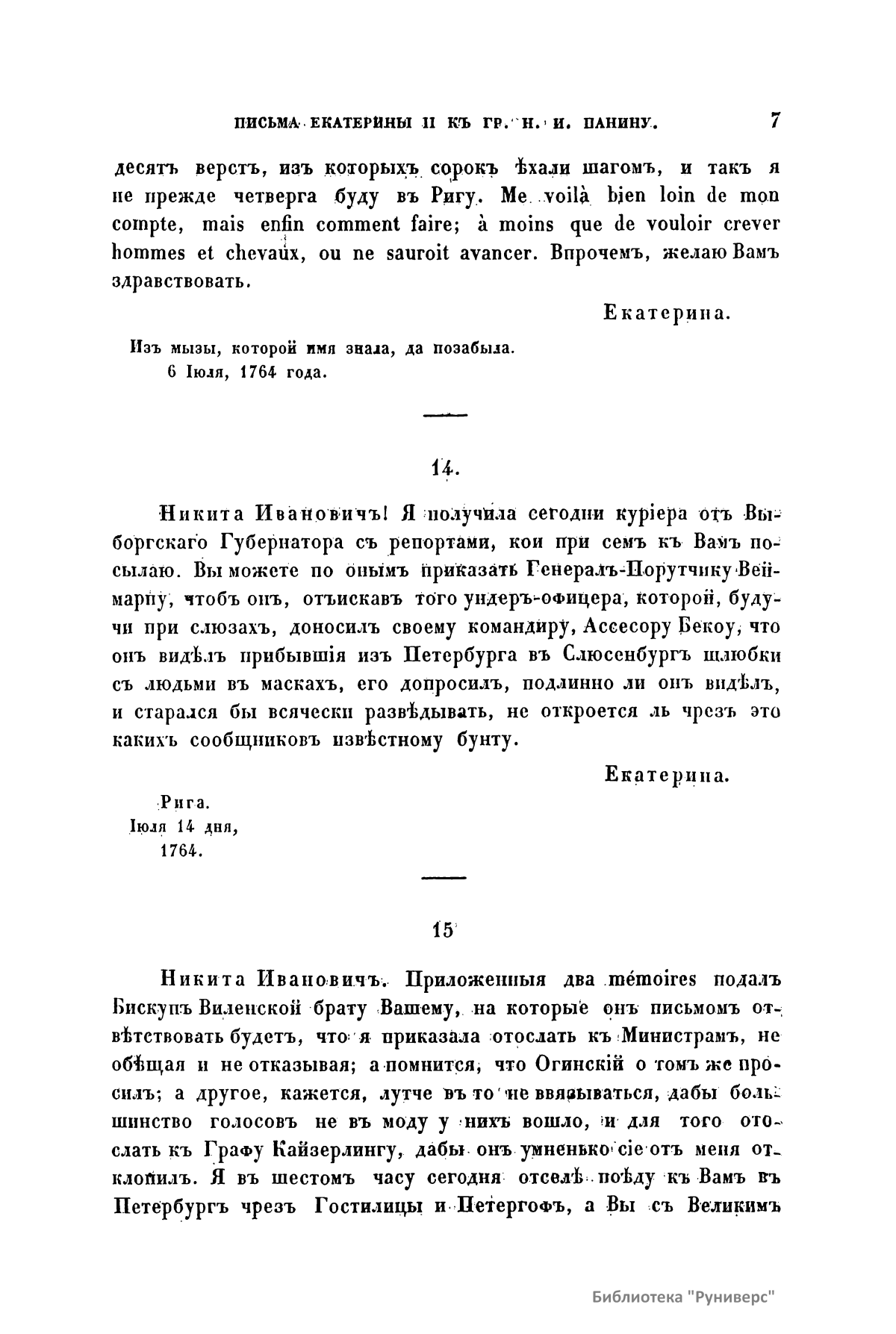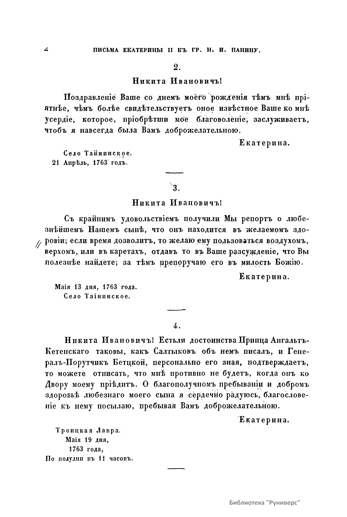 Письма и записки Императрицы Екатерины Второй къ Графу Никитѣ Ивановичу Панину