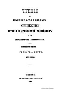 Чтения в Императорском Обществе Истории и Древностей Российских при Московском Университете. 1864. Январь-Март. Книга первая