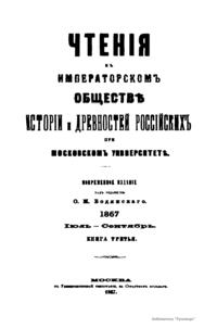Чтенiя въ Императорскомъ Обществѣ Исторiи и Древностей Россiйскихъ при Московскомъ Университетѣ. 1867. Iюль-Сентябрь. Книга третья