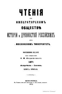Чтения в Императорском Обществе Истории и Древностей Российских при Московском Университете. 1871. Апрель-Июнь. Книга вторая