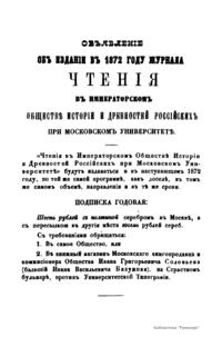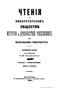 Чтенiя въ Императорскомъ Обществѣ Исторiи и Древностей Россiйскихъ при Московскомъ Университетѣ. 1871. Iюль-Сентябрь. Книга третья