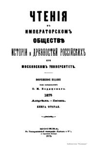Чтенiя въ Императорскомъ Обществѣ Исторiи и Древностей Россiйскихъ при Московскомъ Университетѣ. 1875. Апрѣль-Iюнь. Книга вторая