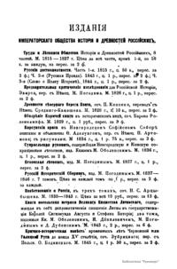 «Чтения в Императорском обществе истории и древностей российских» – периодическое издание трудов Общества. Выпускались отдельными книгами на протяжении 72 лет с десятилетним перерывом. Первая книга вышла в свет в январе 1846 г. Каждая книга состояла из четырех разделов: исторических исследований, отечественных исторических документальных материалов, иностранных материалов и смеси. Публиковались также исследования и материалы по археологии, этнографии, нумизматике, палеографии и другим дисциплинам. До июня 1848 г. было выпущено 23 книги «Чтений». В июньской книге за 1848 г. О. М. Бодянский поместил записки Дж. Флетчера о Московском государстве, что вызвало недовольство Николая I. «Чтения» были закрыты, а Бодянский удален из Московского университета. Издание «Чтений» возобновилось только в 1858 г., когда Бодянский снова стал секретарем общества. Издание приняло славянофильское направление, к прежним четырем разделам «Чтений» прибавился раздел славянских материалов. С 1858 г. «Чтения» выходили в свет четыре раза в год.