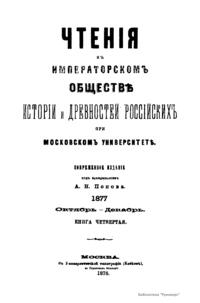 Чтенiя въ Императорскомъ Обществѣ Исторiи и Древностей Россiйскихъ при Московскомъ Университетѣ. 1877. Октябрь-Декабрь. Книга четвертая