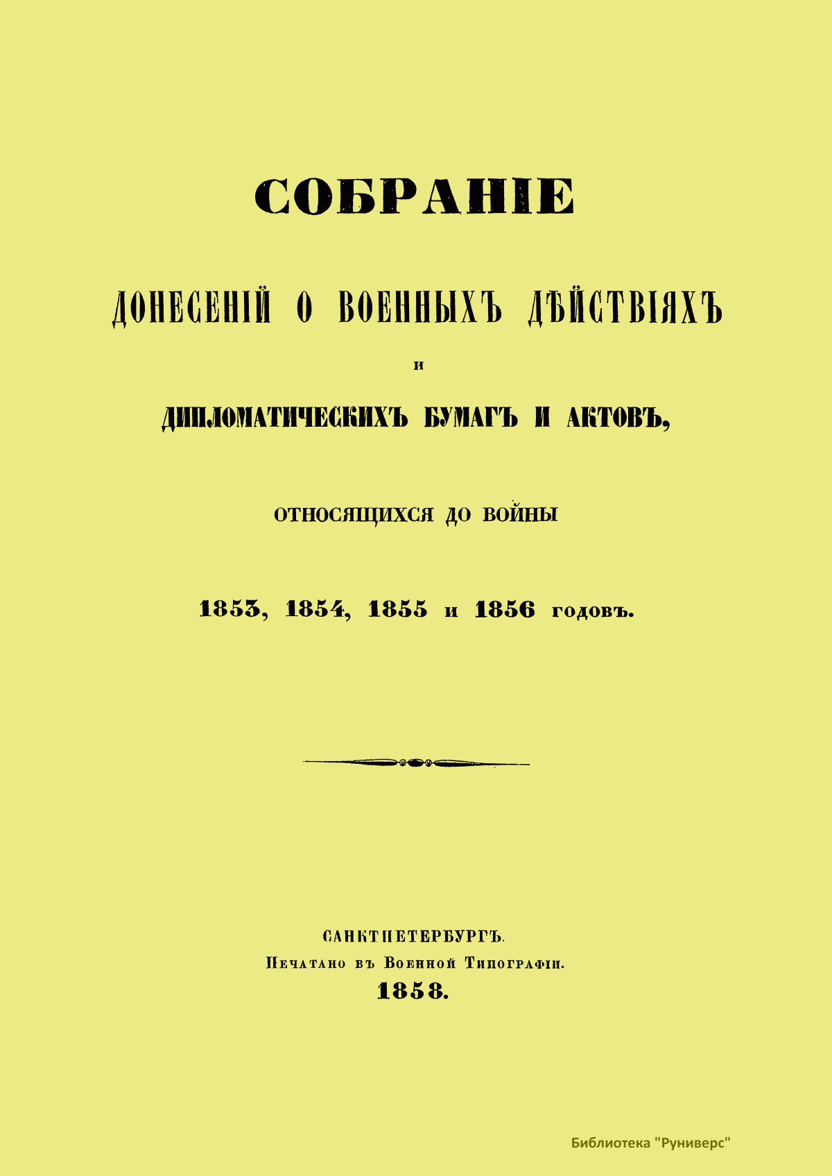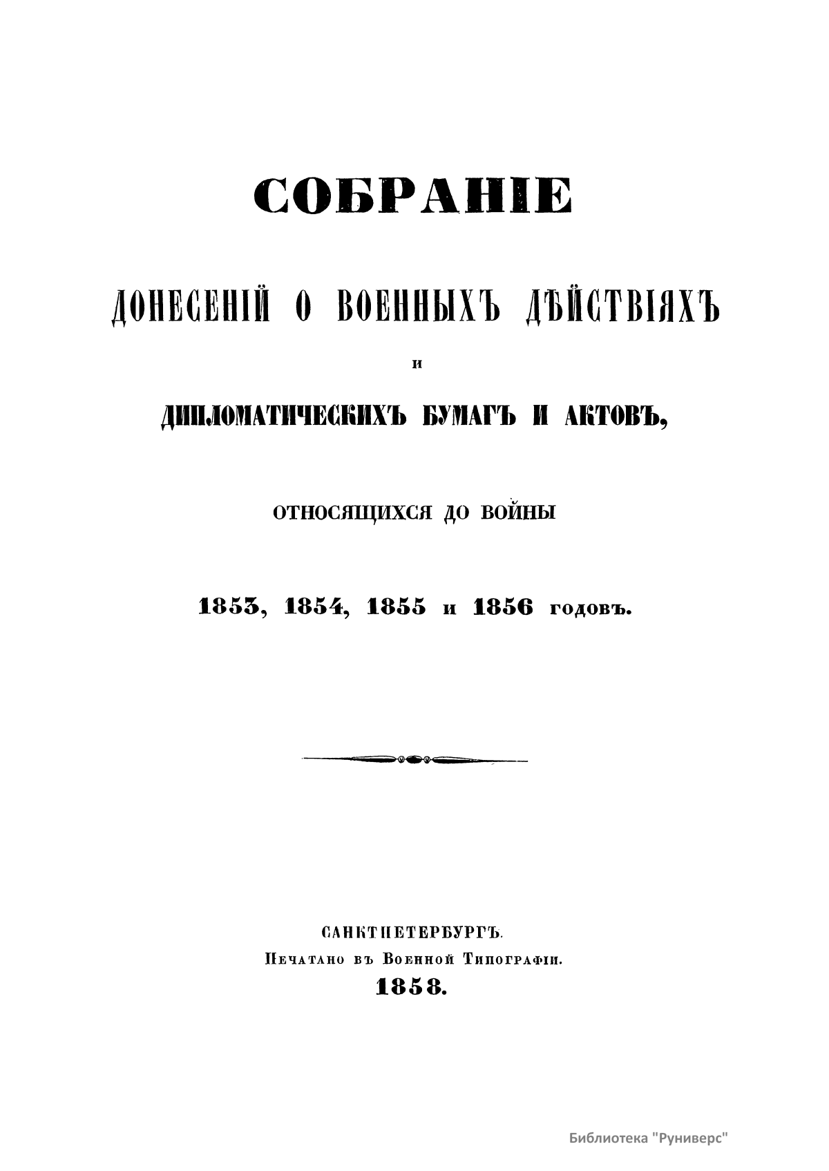 Собранiе донесенiй о военныхъ дѣйствiяхъ и дипломатическихъ бумагъ и актовъ, относящихся до войны 1853, 1854, 1855 и 1856 годовъ