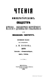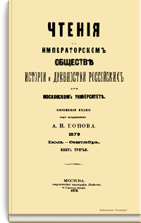Чтенiя въ Императорскомъ Обществѣ Исторiи и Древностей Россiйскихъ при Московскомъ Университетѣ. 1879. Iюль-Сентябрь. Книга третья