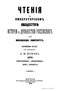 Чтенiя въ Императорскомъ Обществѣ Исторiи и Древностей Россiйскихъ при Московскомъ Университетѣ. 1879. Октябрь-Декабрь. Книга четвертая