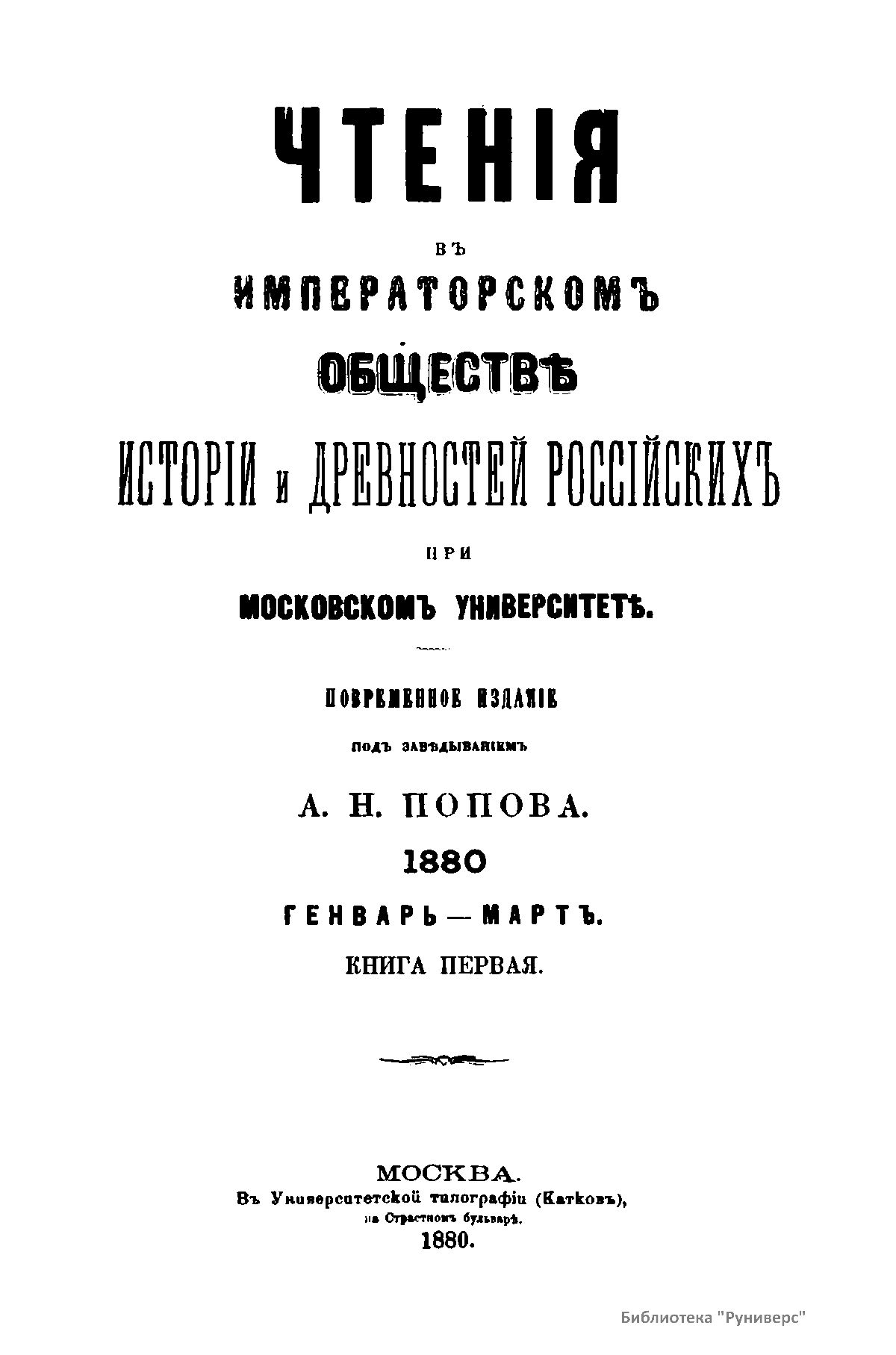 Чтенiя въ Императорскомъ Обществѣ Исторiи и Древностей Россiйскихъ при Московскомъ Университетѣ. 1880. Генварь-Мартъ. Книга первая