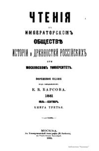 Чтения в Императорском Обществе Истории и Древностей Российских при Московском Университете. 1881. Июль-Сентябрь. Книга третья