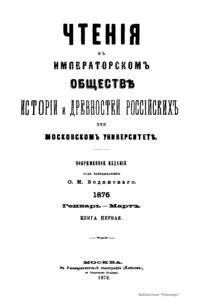 Чтенiя въ Императорскомъ Обществѣ Исторiи и Древностей Россiйскихъ при Московскомъ Университетѣ. 1876. Генварь-Мартъ. Книга первая
