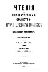 Чтенiя въ Императорскомъ Обществѣ Исторiи и Древностей Россiйскихъ при Московскомъ Университетѣ. 1883. Апрѣль-Iюнь. Книга вторая