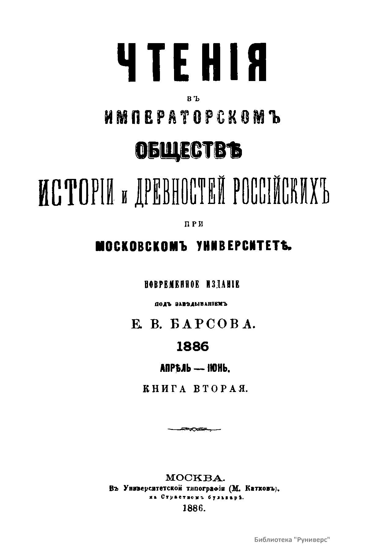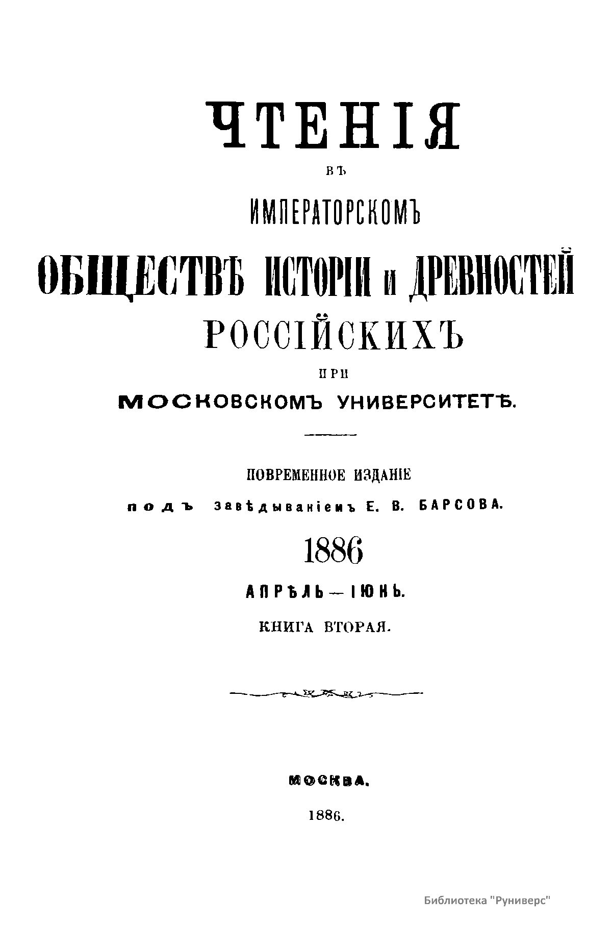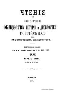 Чтенiя въ императорскомъ обществѣ Исторiи и Древностей Россiйских при Московском Университетѣ. 1886. Апрѣль-Iюнь. Книга вторая