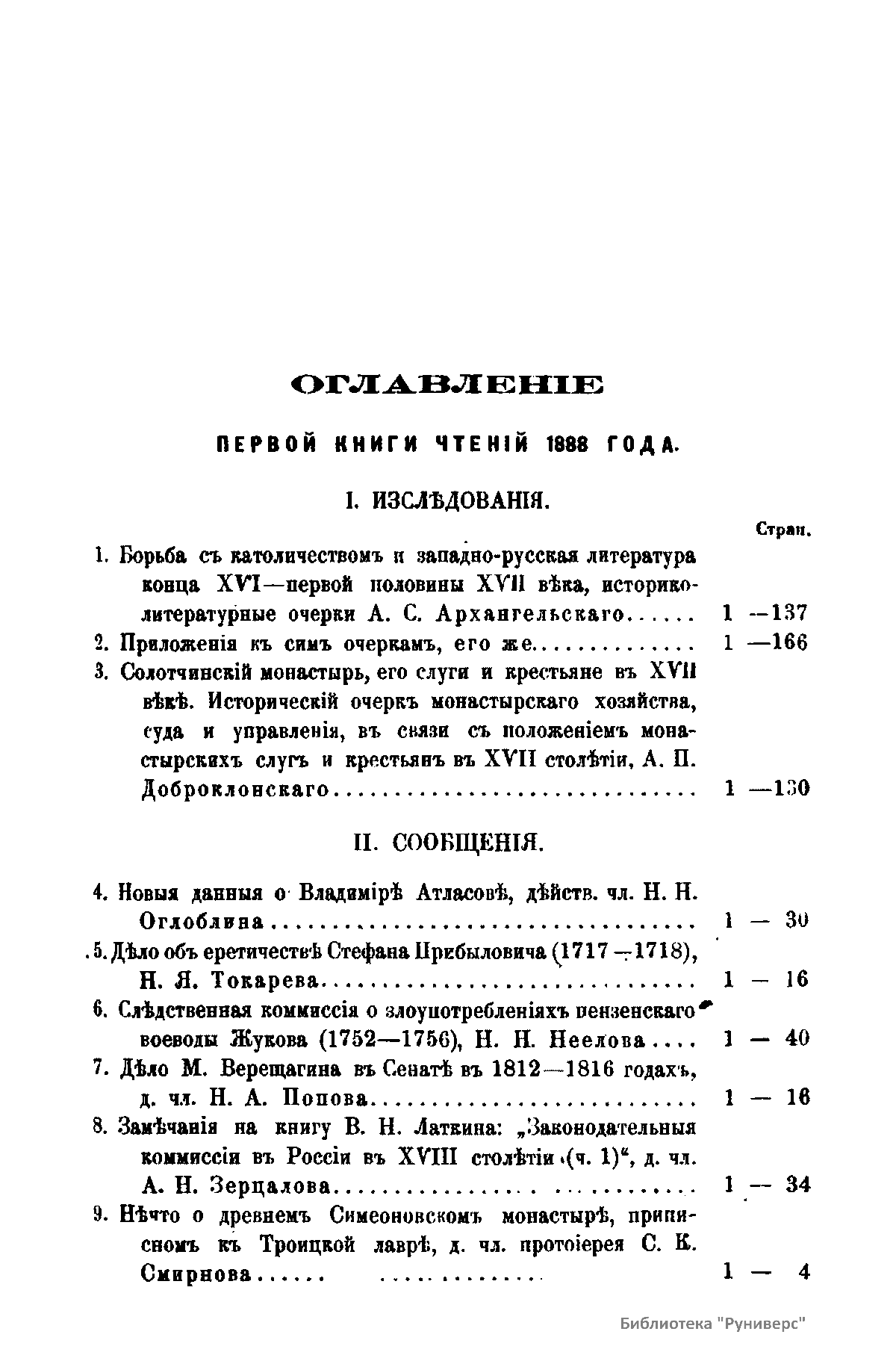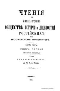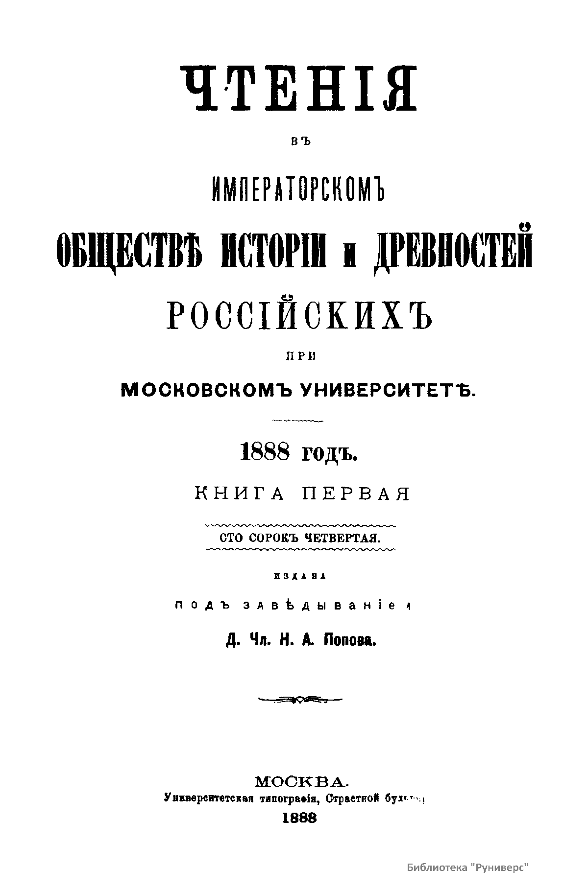 Чтенiя въ императорскомъ обществѣ Исторiи и Древностей Россiйских при Московском Университетѣ. 1888 годъ. Книга первая
