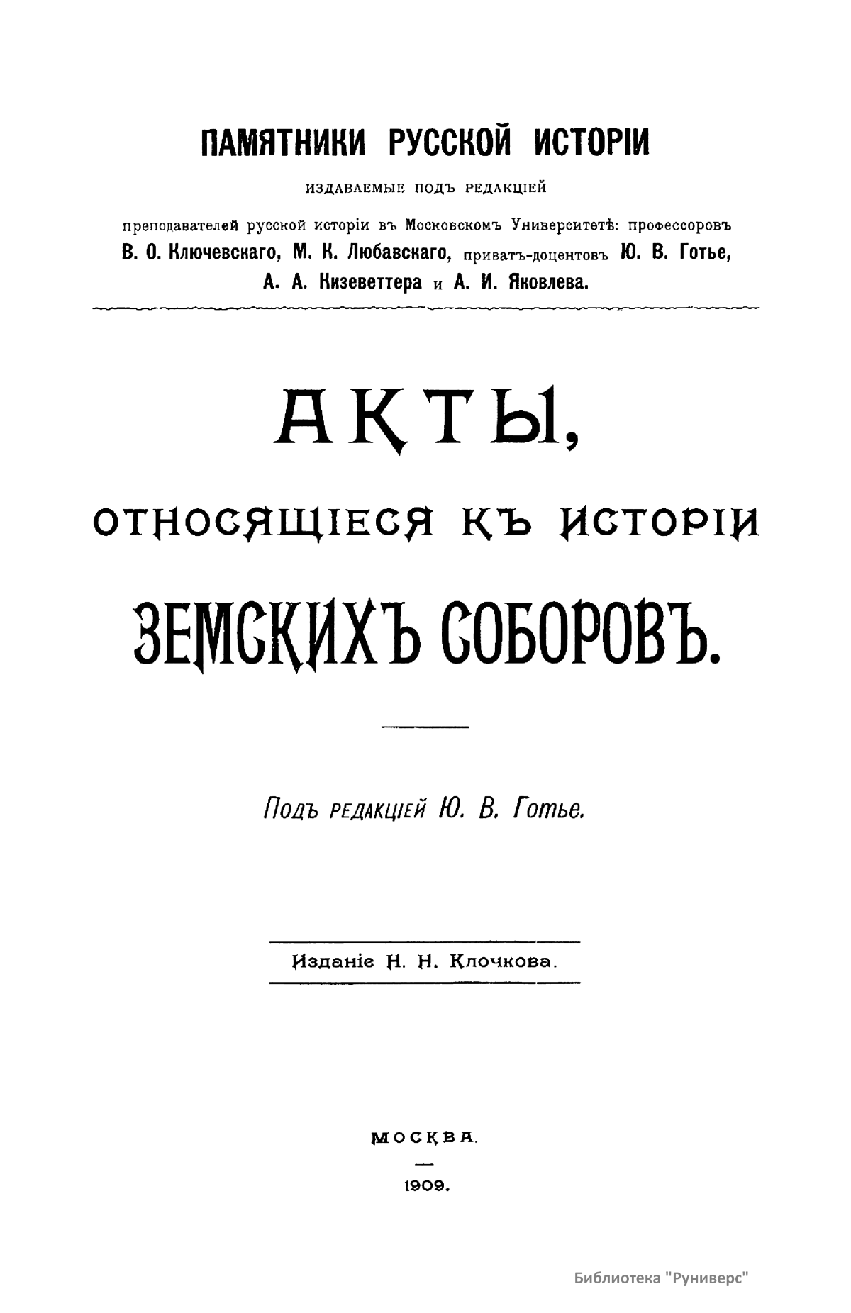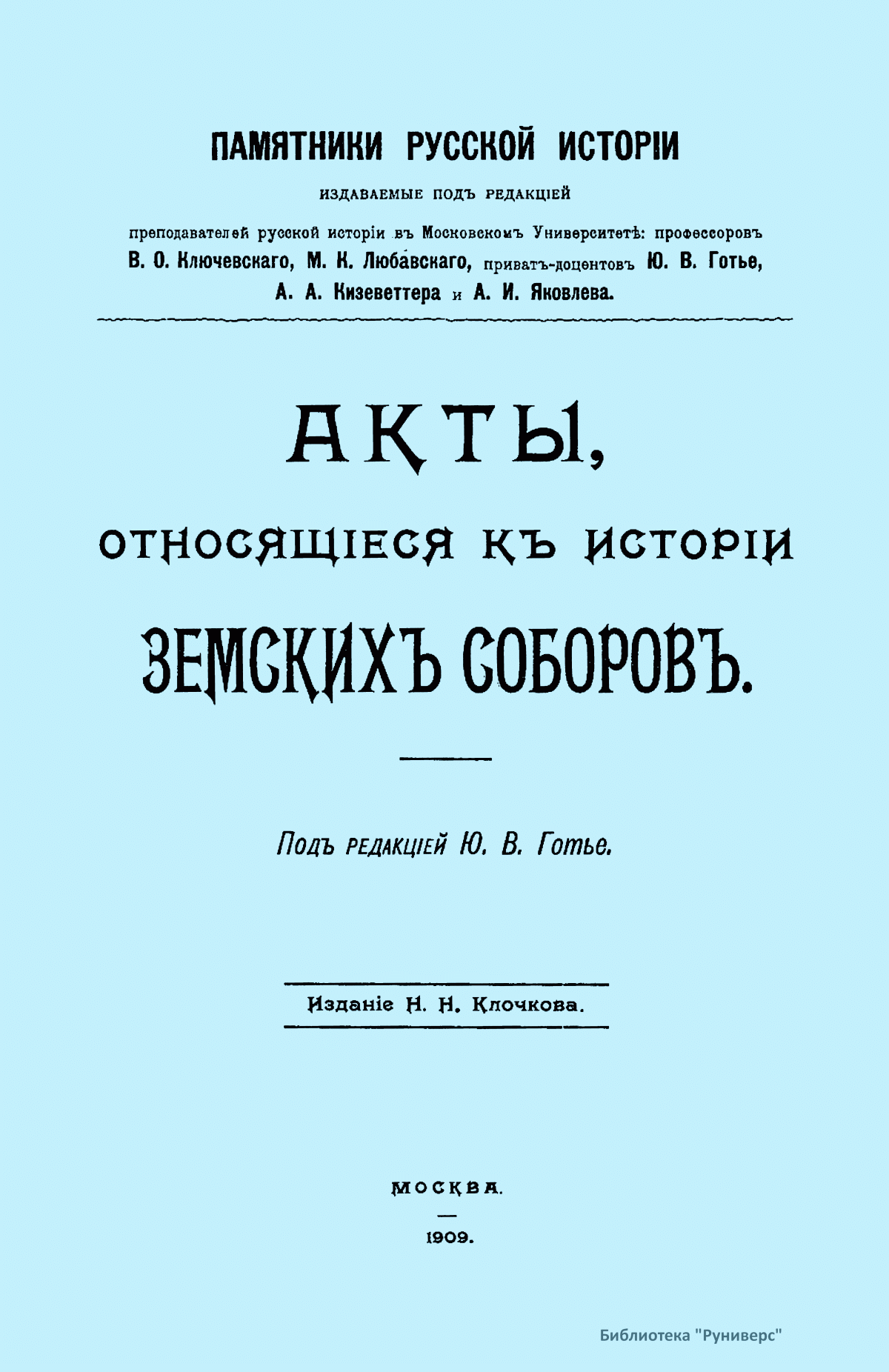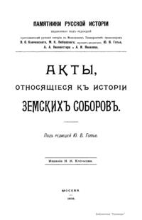 Акты, относящiеся къ исторiи земскихъ соборовъ