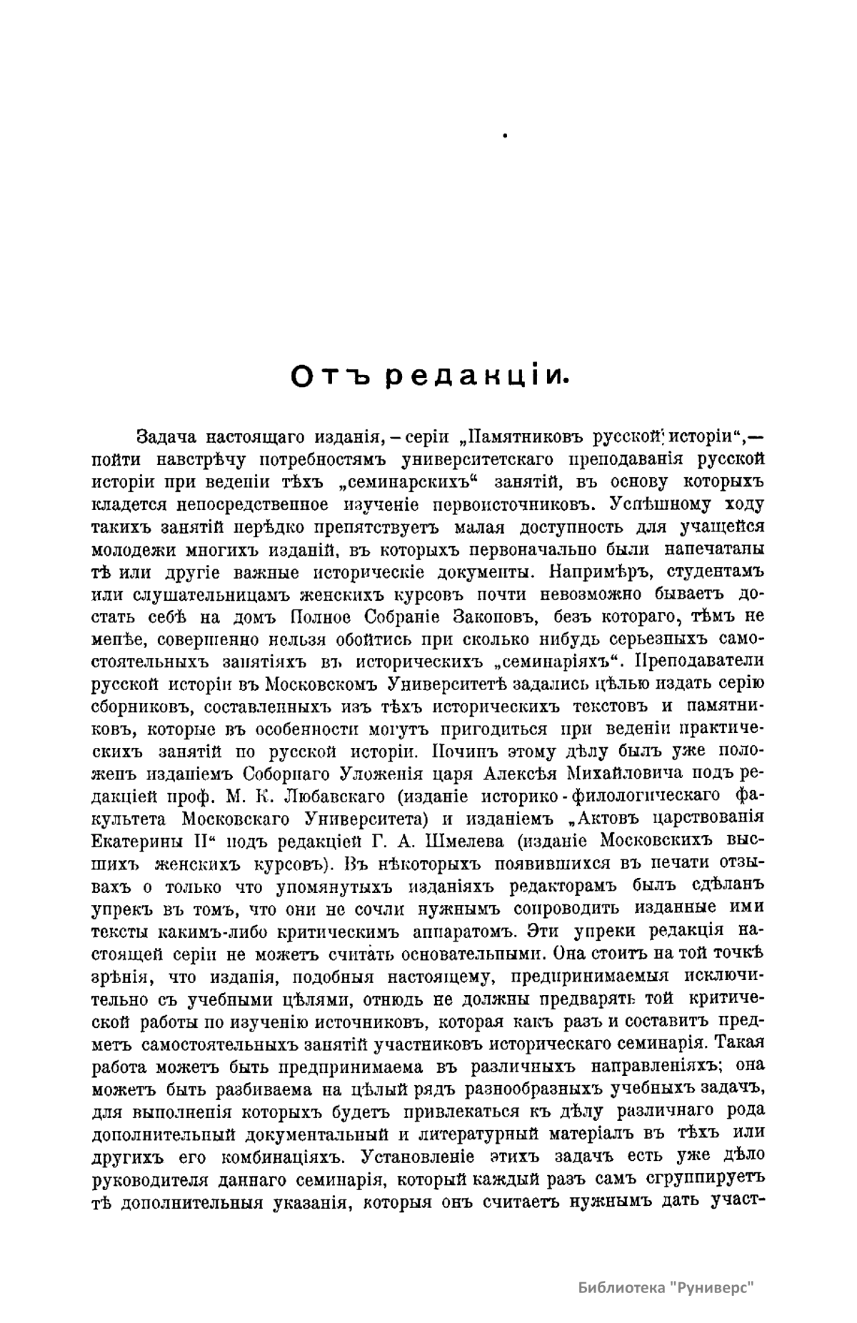 Земские соборы – высшие сословно-представительные учреждения России середины XVI – конца XVII веков. Включали членов Освященного собора, Боярской думы, «государева двора», выборных от провинциального дворянства и верхушки горожан. На Земских соборах рассматривались важнейшие государственные вопросы. Задача настоящего издания – пойти навстречу потребностям университетского преподавания Русской истории при ведении тех семинарских занятий, в основу которых кладется непосредственное изучение первоисточников. Сборник делает доступным и наглядным первоначальное знакомство с составом и деятельностью Земских соборов. Здесь даются документы, касающиеся деятельности всех известных Земских соборов. Первое место отводится постановлениям соборов (выпущена грамота об избрании Михаила Федоровича Романова ввиду ее большого объема). Помещен также материал, рисующий фактическую обстановку избрания депутатов на Земские соборы.