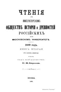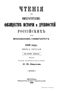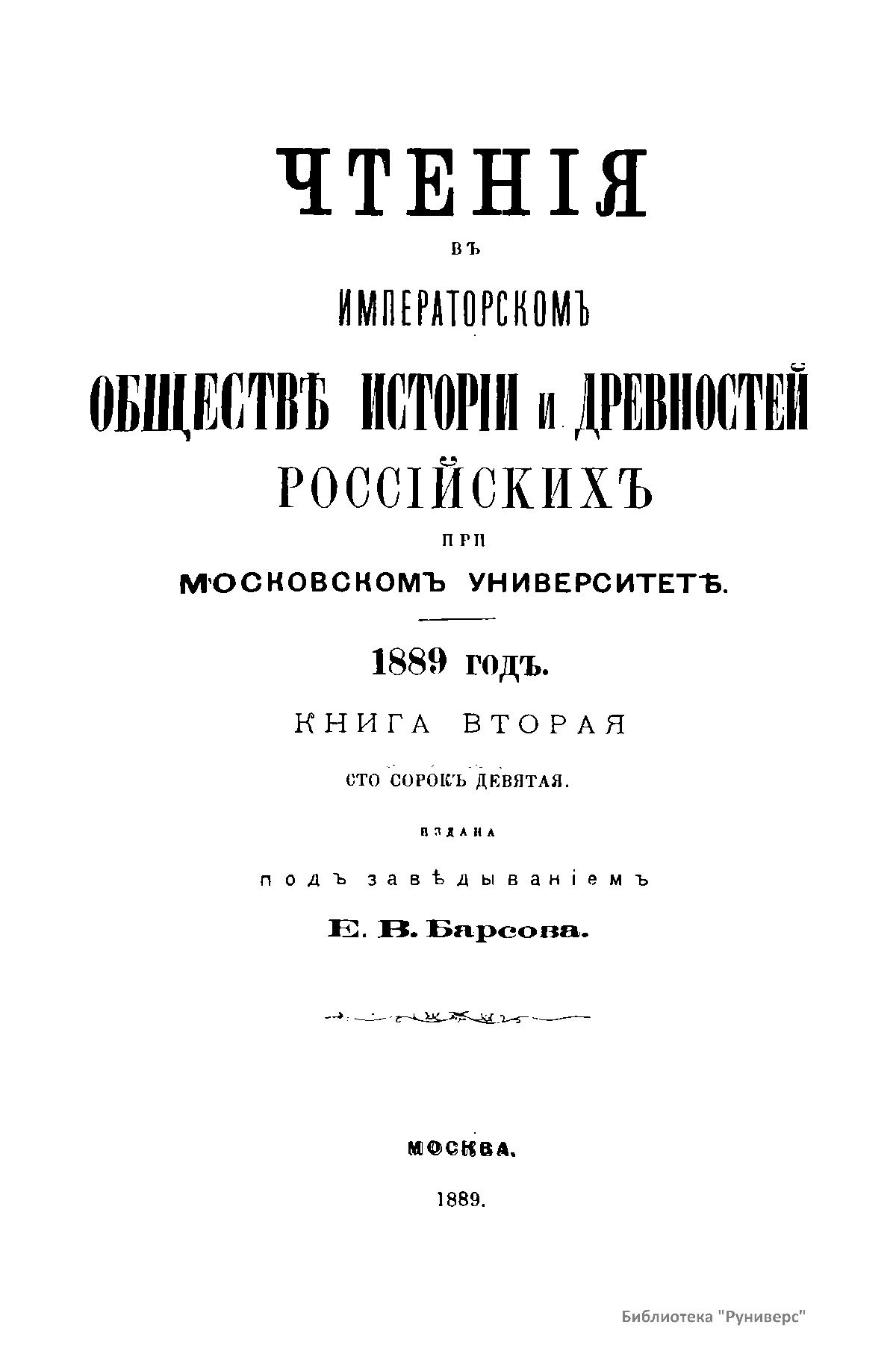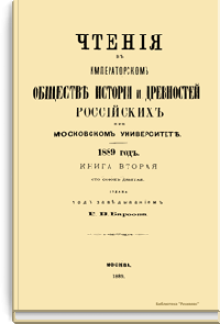 Чтенiя въ Императорскомъ Обществѣ Исторiи и Древностей Россiйскихъ при Московскомъ Университетѣ. 1889 годъ. Книга вторая